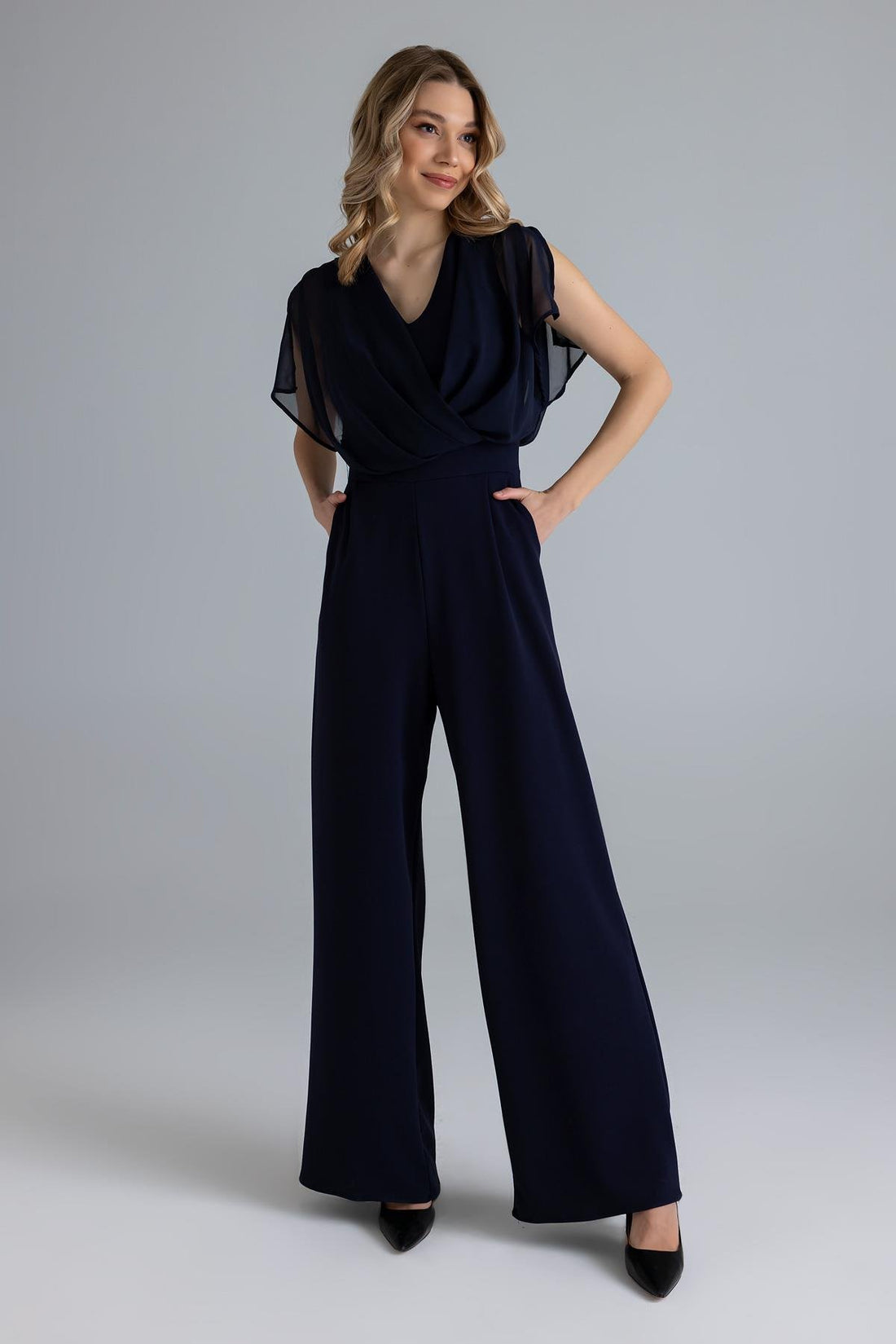 Alisora Şifon Kol Detaylı Şık Tulum – Lacivert & Siyah