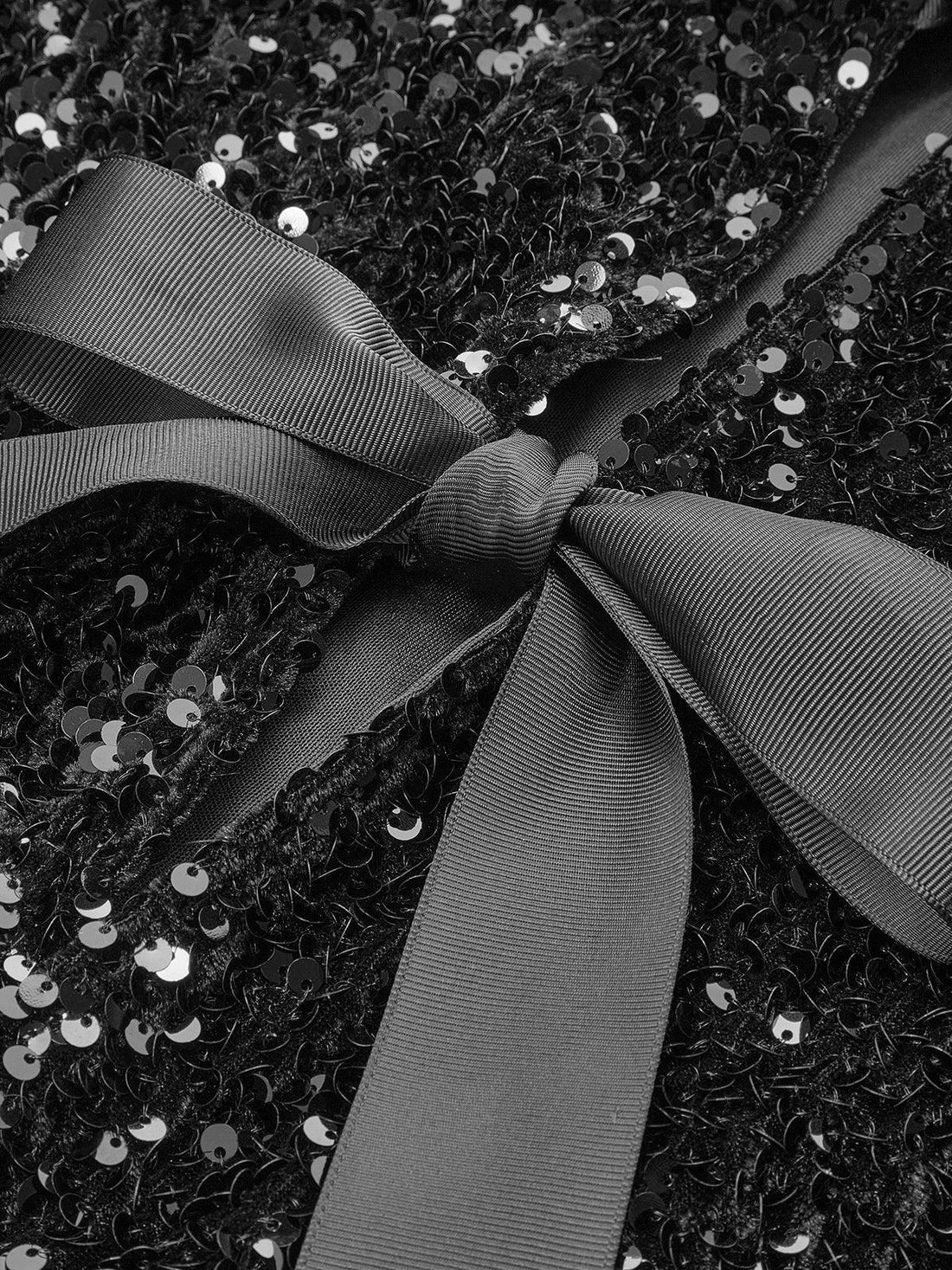 Göz alıcı siyah pullar ve zarif fiyonk bağlama detaylarıyla tasarlanmış bu şık ceket, her ortamda...