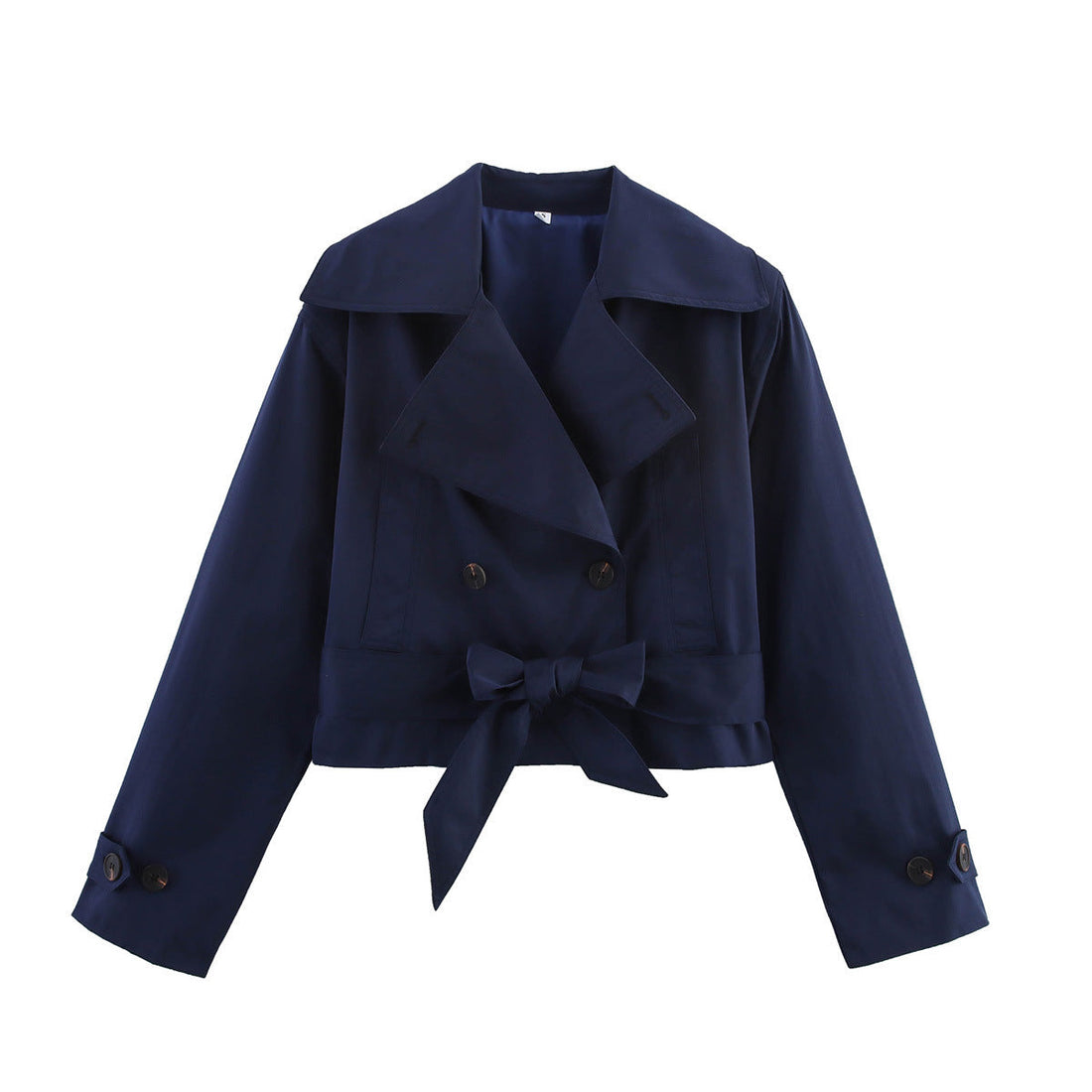 Casual ve modern görünümüyle öne çıkan kısa trençkot, çift sıra düğme detayı ve rahat kesimiyle...