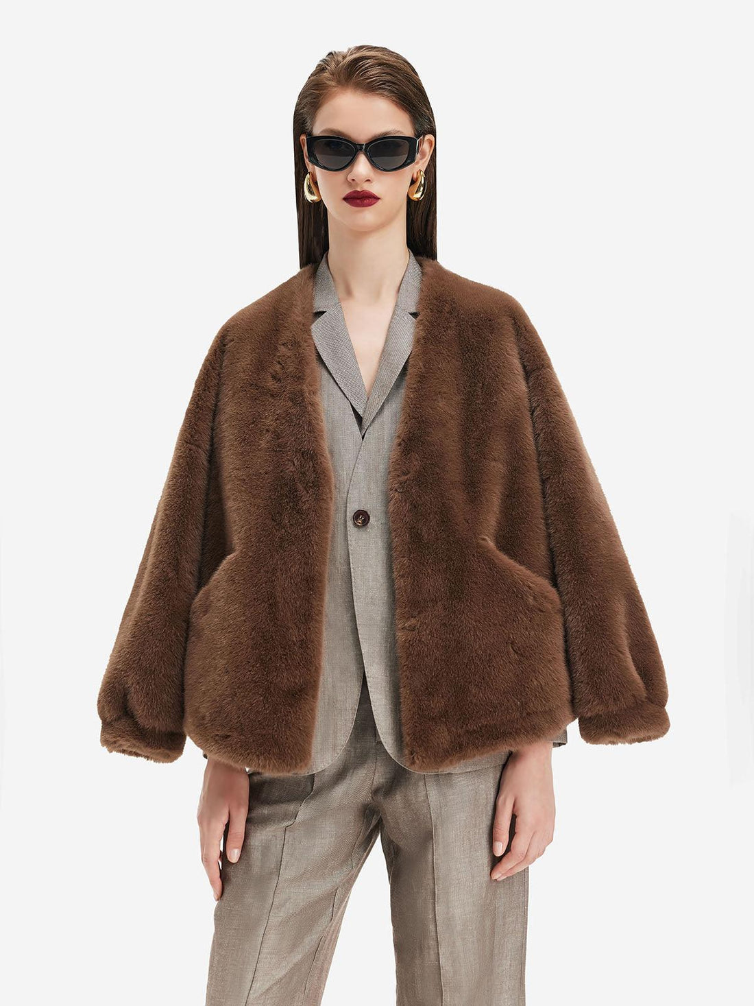 Kahverengi Oversize Peluş Ceket