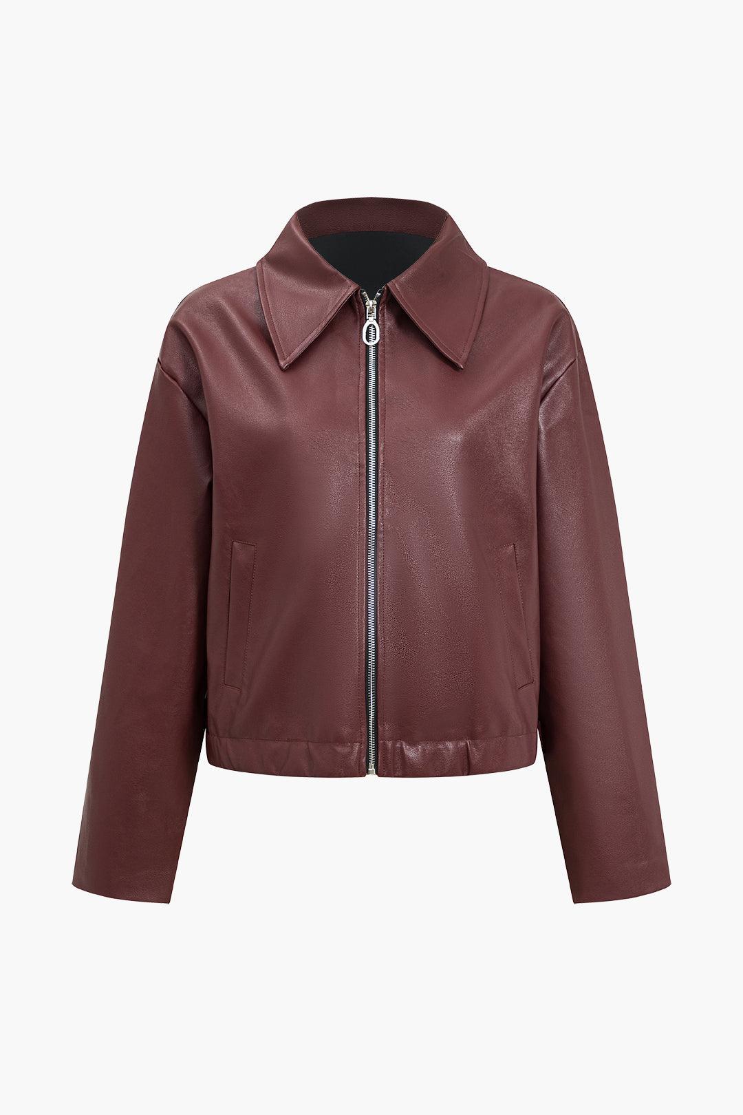 Luxe Burgundy Faux Leather Ceket Ürün Açıklaması: Luxe Burgundy Faux Leather Ceket, modern zarafet ve...
