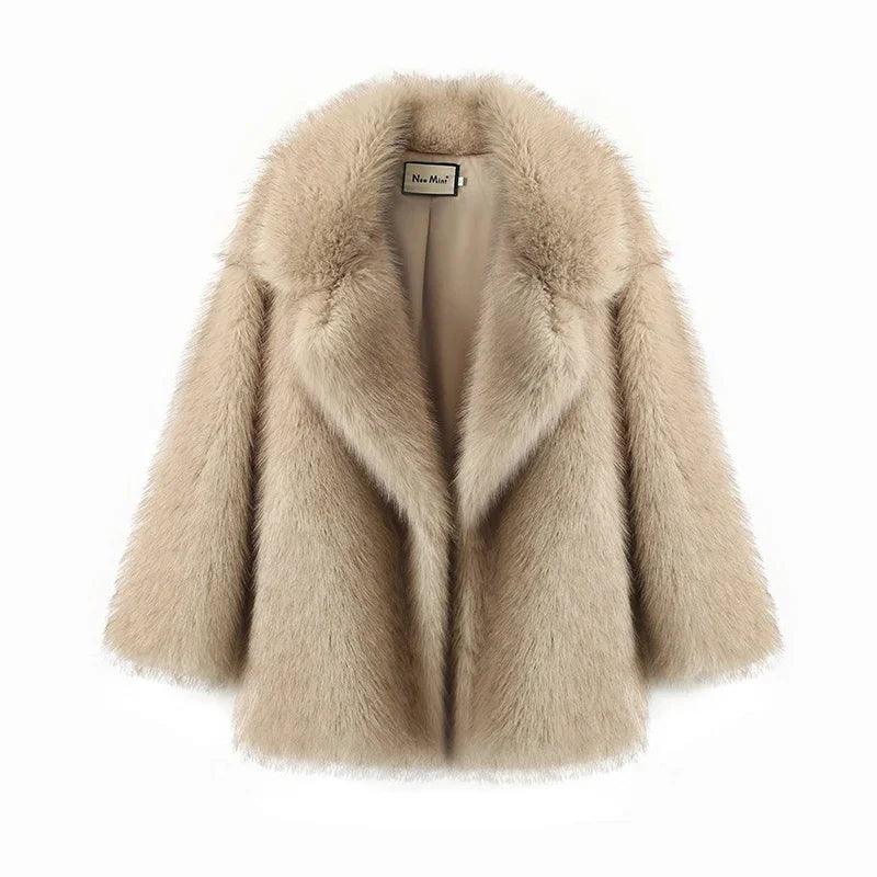 Bej, gri ve kahverengi renkleri bulunan bu lüks suni kürk kaban ile kış gardırobunuzu yükseltin....