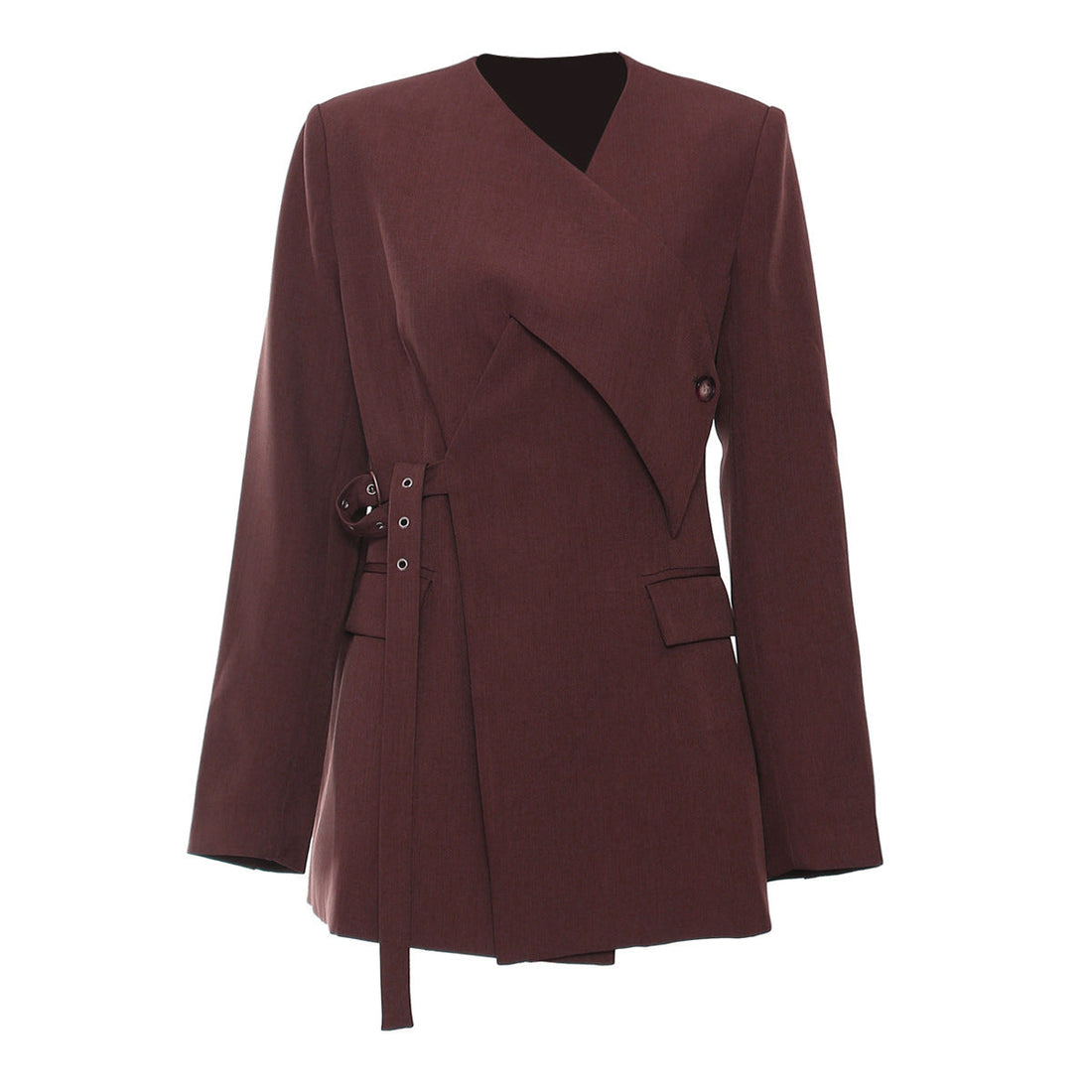 Kruvaze Yaka Kemer Detaylı Premium Ceket