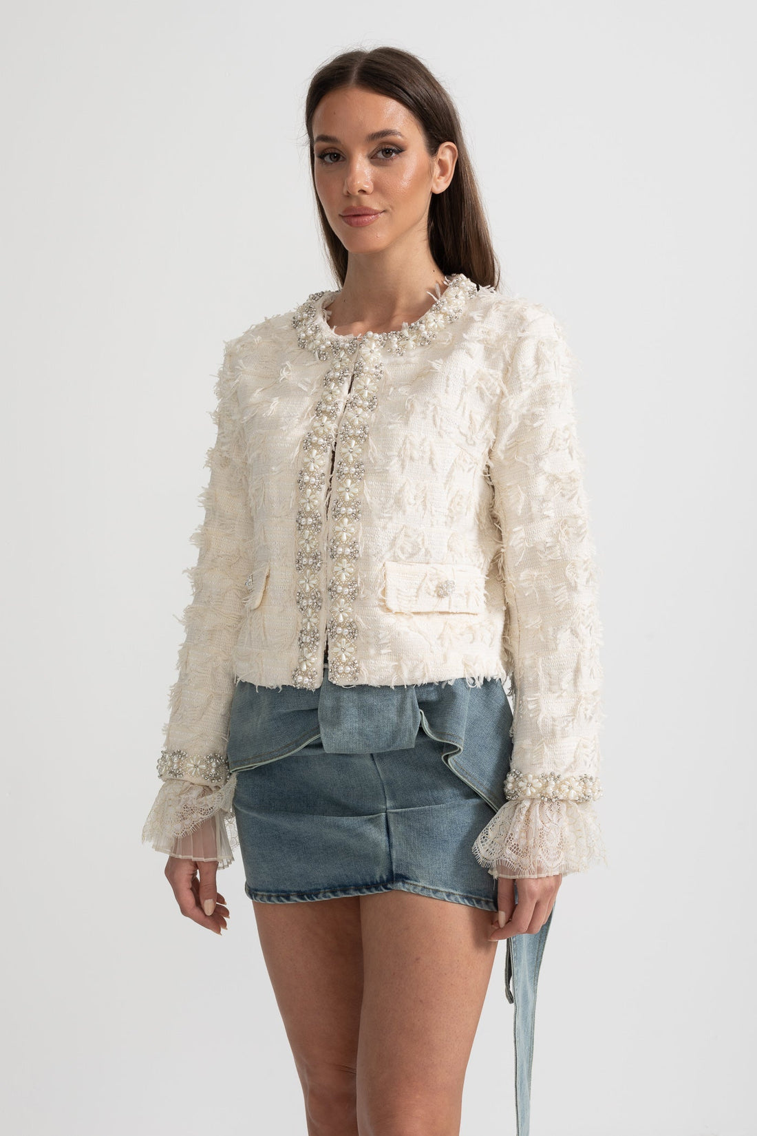 İnci ve Kristal Detaylı Ceket