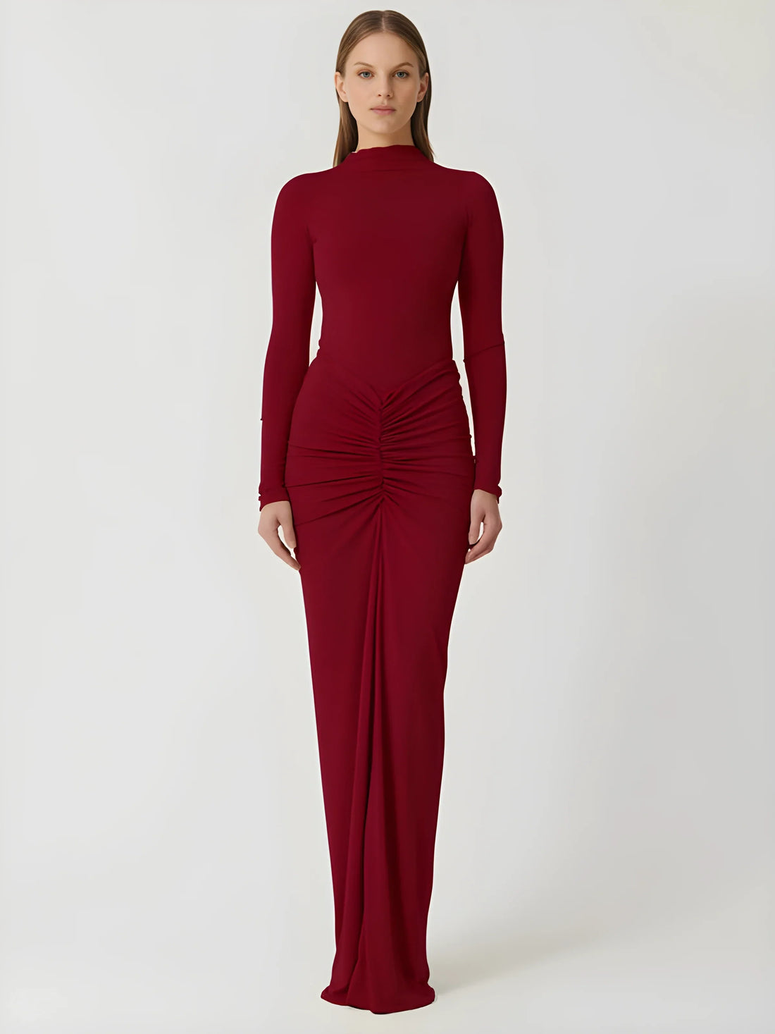Zamansız şıklığıyla öne çıkan bordo uzun kollu triko maxi elbise, fit kesimiyle vücudu sararak feminen...