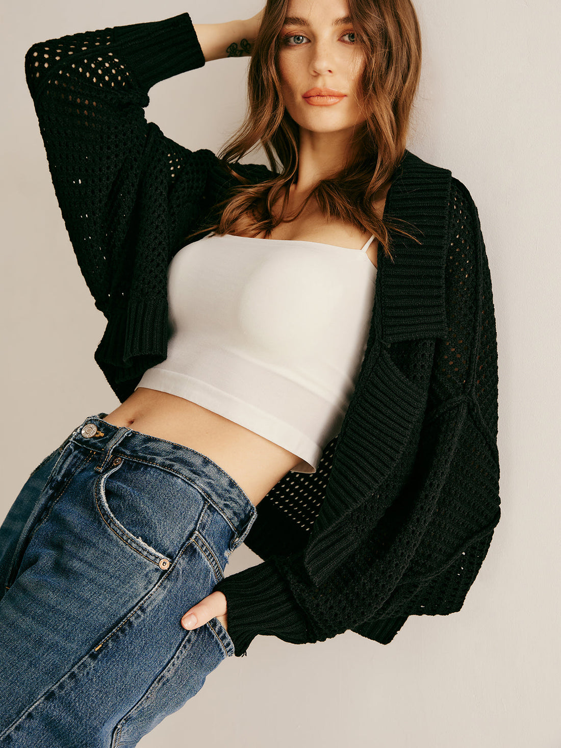 Marul Süslemeli İçi Boş Düğmeli Hırka