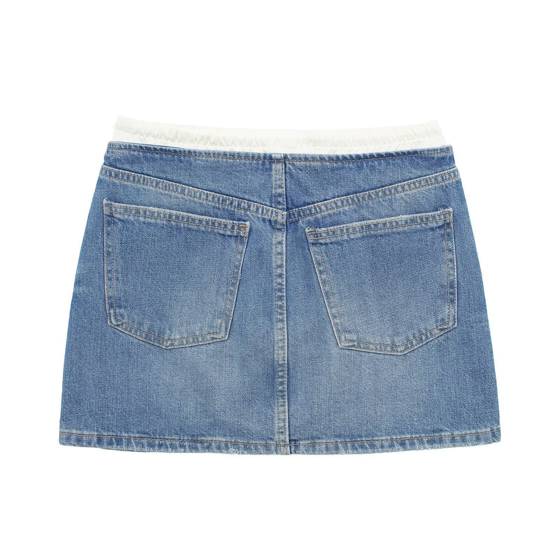 Kamuflaj Baskılı Süper Mini Kot Etek