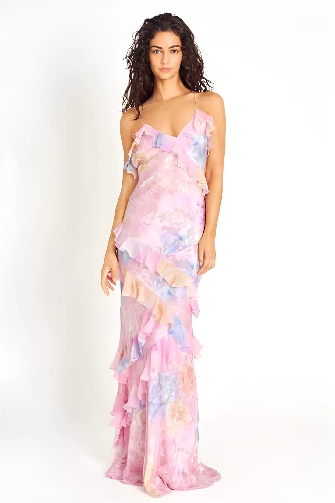 Gün Batımı Öpücükleri Volanlı Uzun Elbise