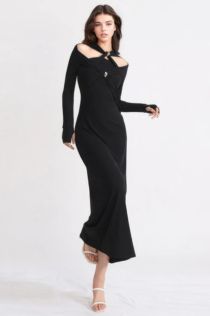 Nita Kesikli Çapraz Göğüslü Midi Örgü Elbise