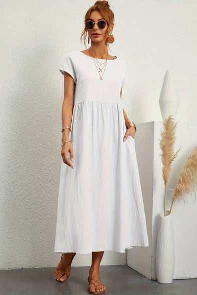 Vana Korse Bağcıklı Beyaz Midi Elbise
