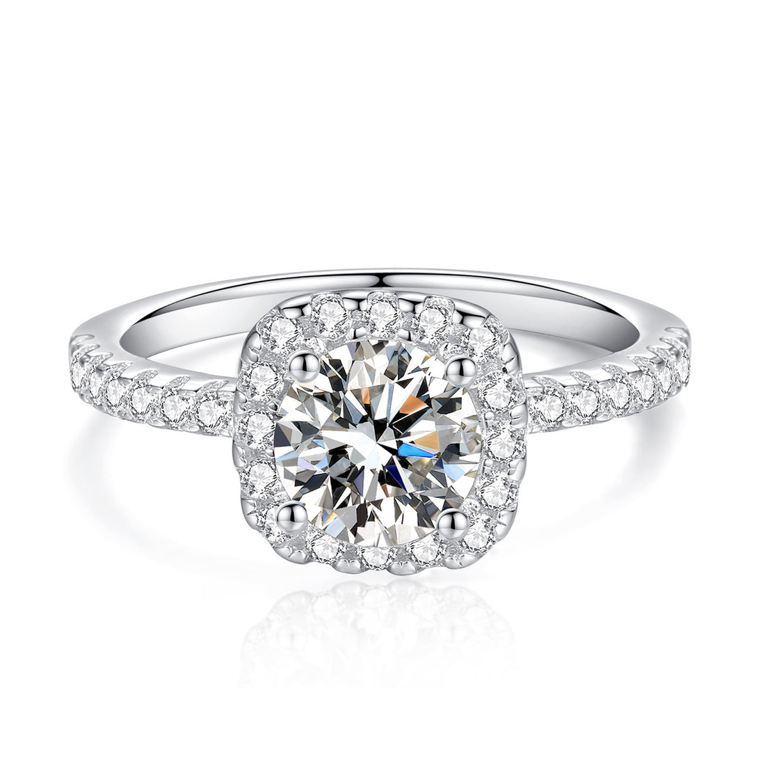 925 Ayar Moissanite Halo Işıltılı Taşlı Yüzük – Zarif ve Göz Alıcı