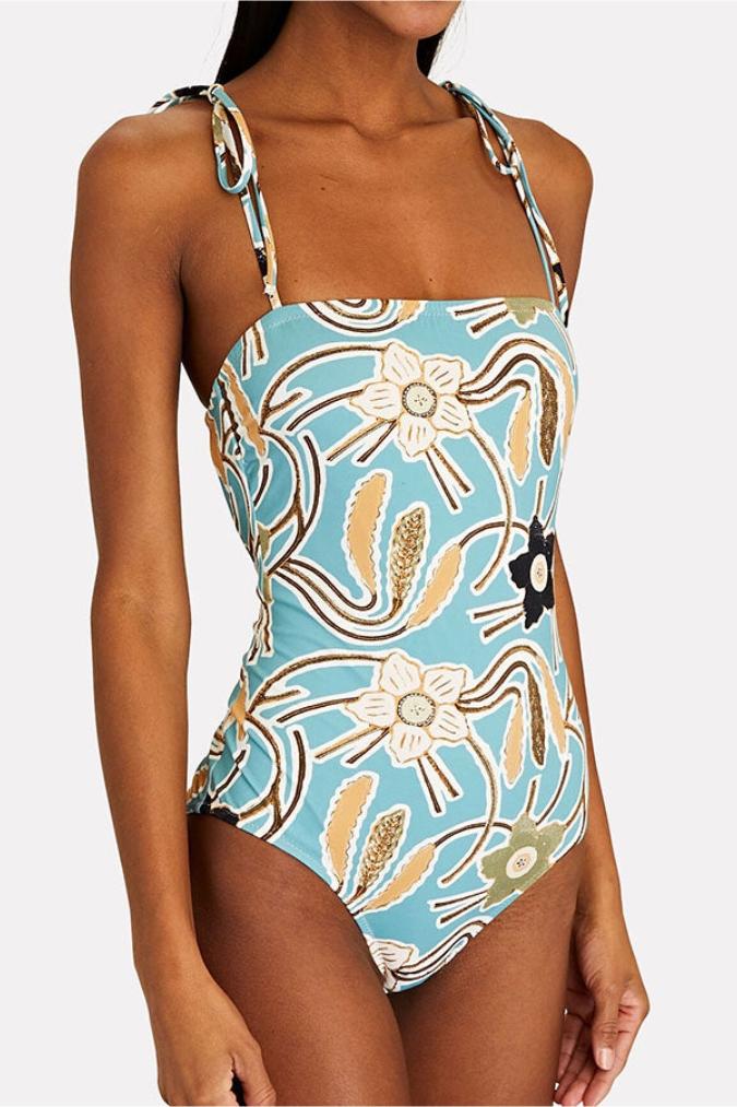 Lara Badeanzug mit Palmenmuster und offenem Rücken