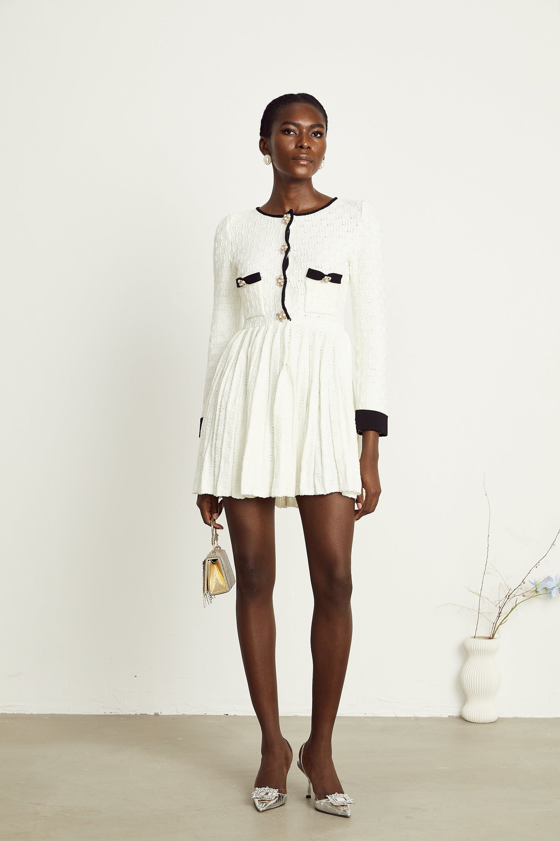 Solange weißes gestricktes Faltenminikleid
