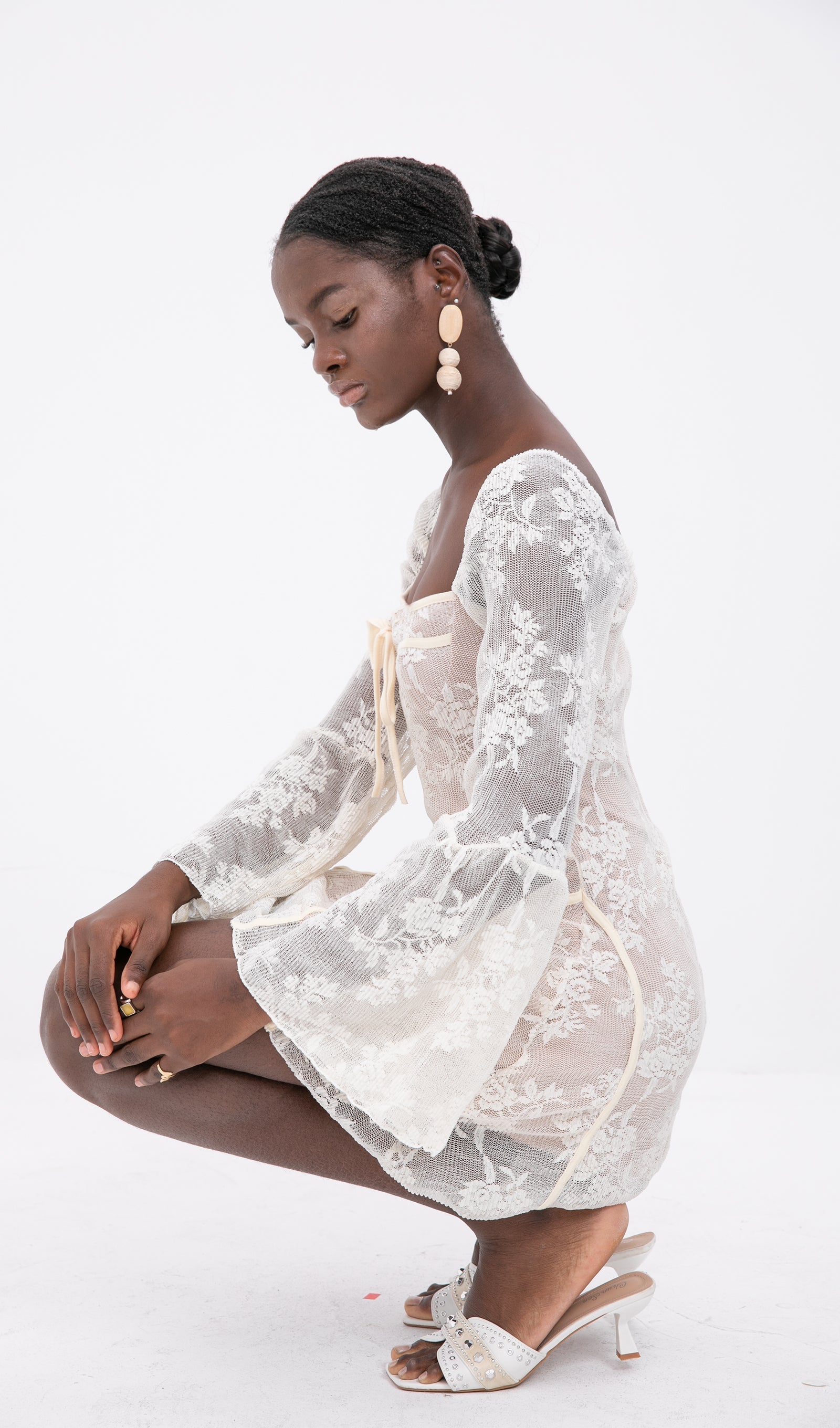 Trendiges elfenbeinfarbenes Spitzenminikleid von Kavita
