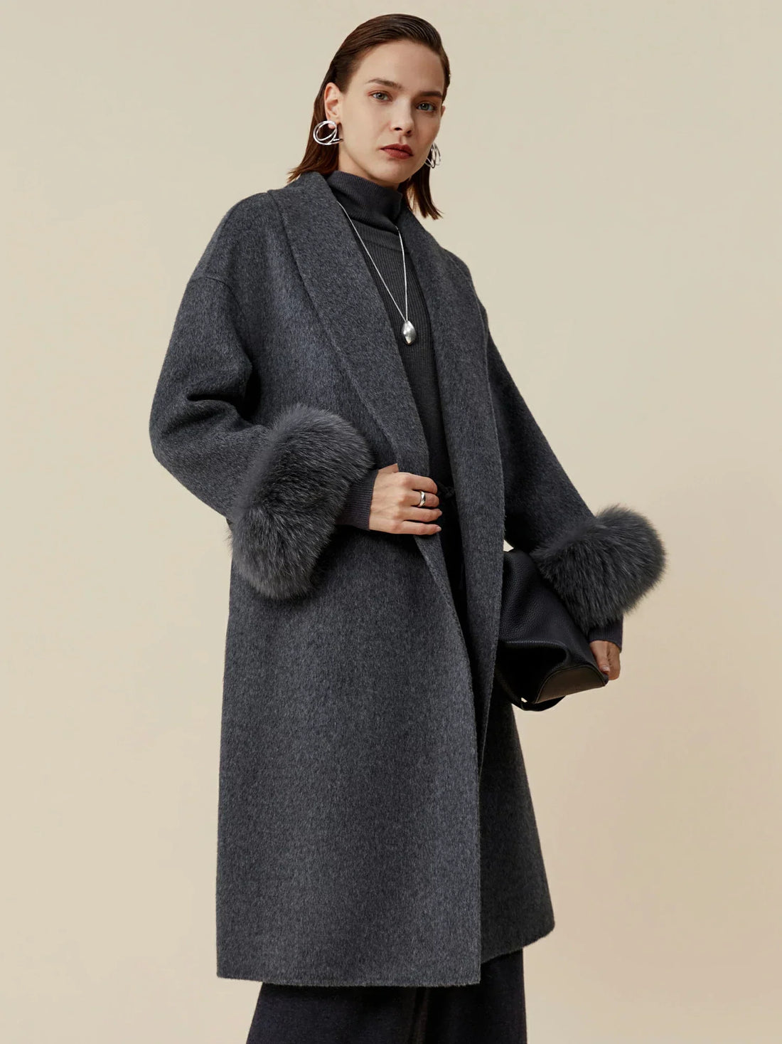 Wool Collar Long Sleeved Plush Cuffed Long Coat