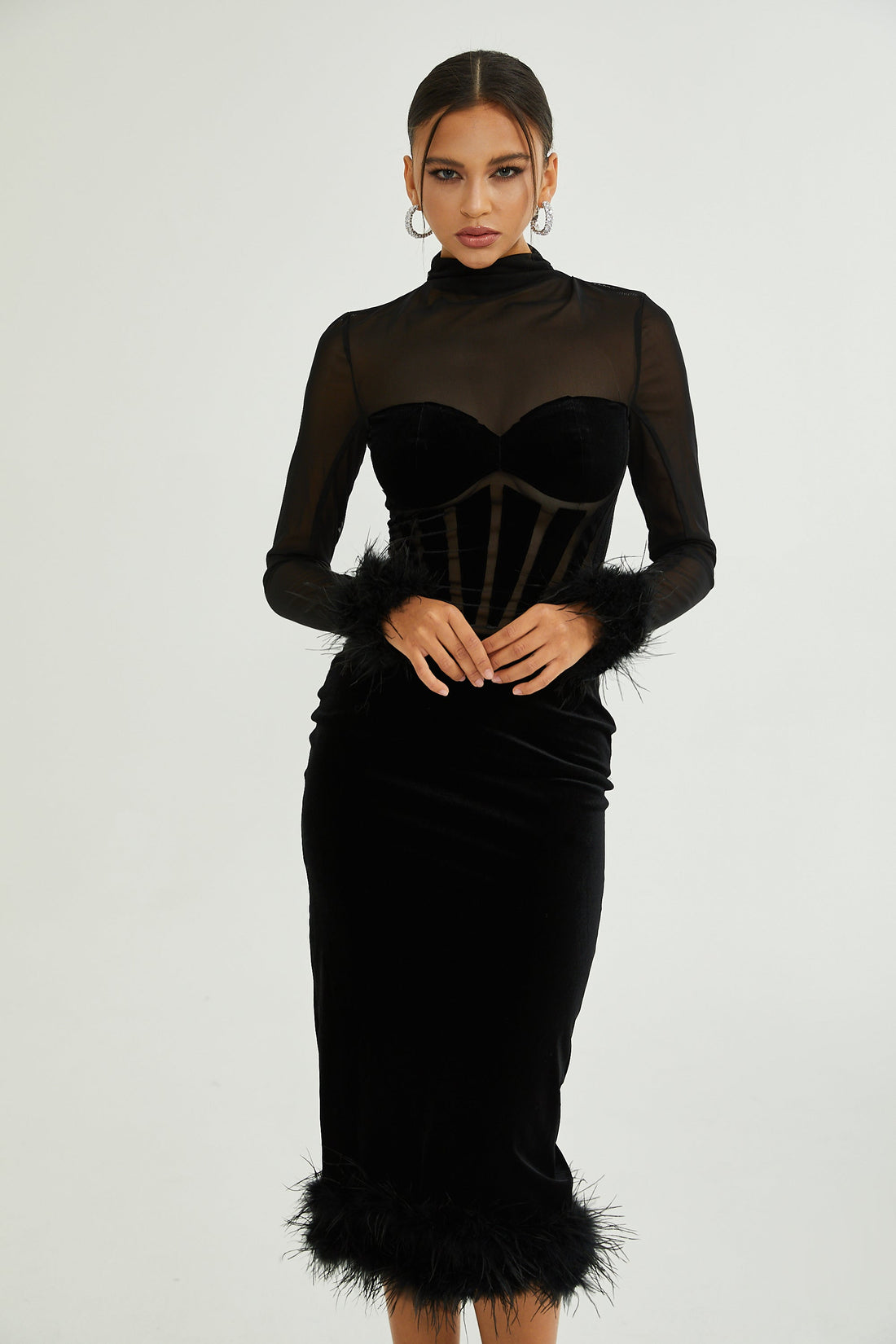 Zoe Floral Embroidered Semi-Sheer Midi Dress