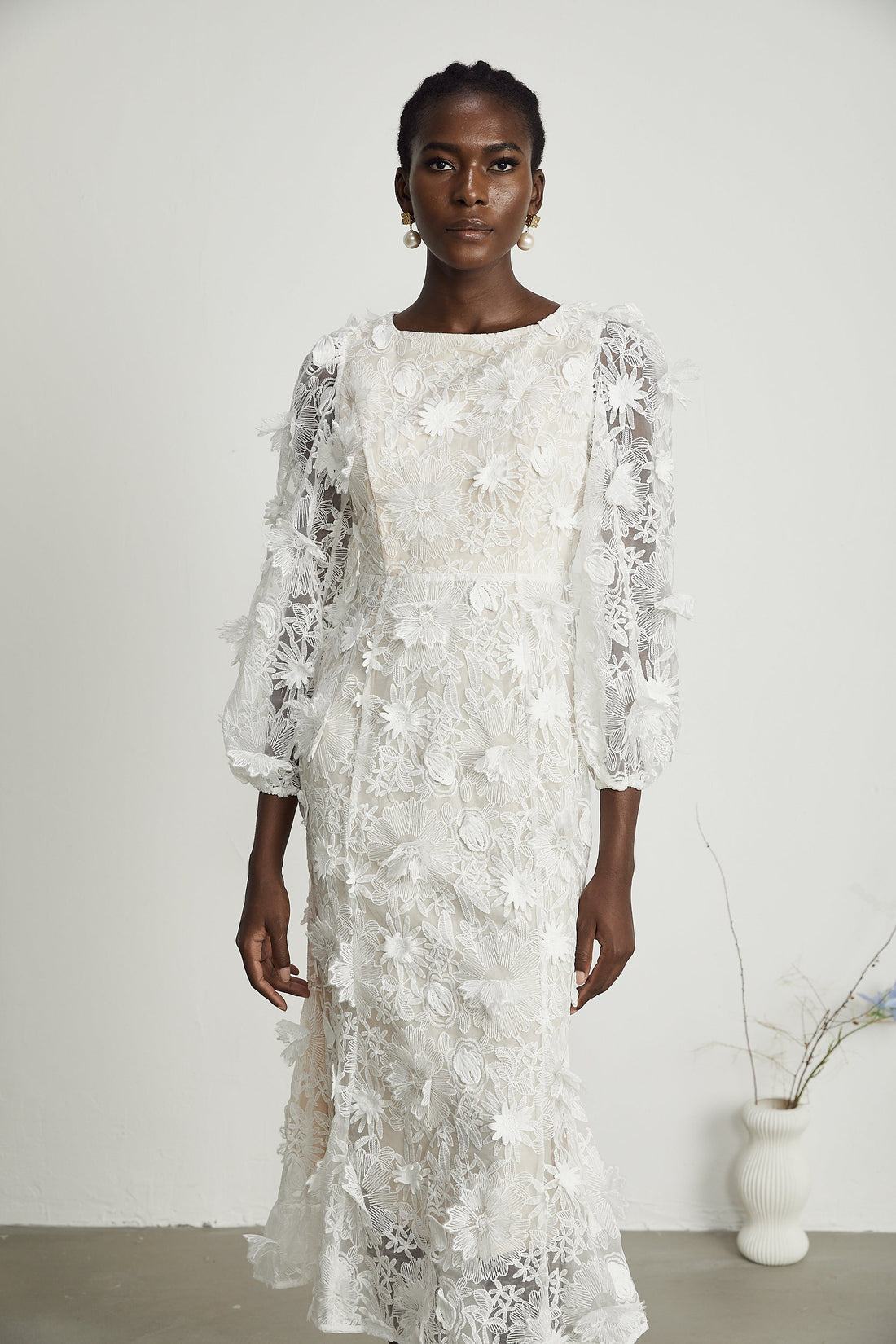 Lucie Midi Dress with Faux Flower Embellishments