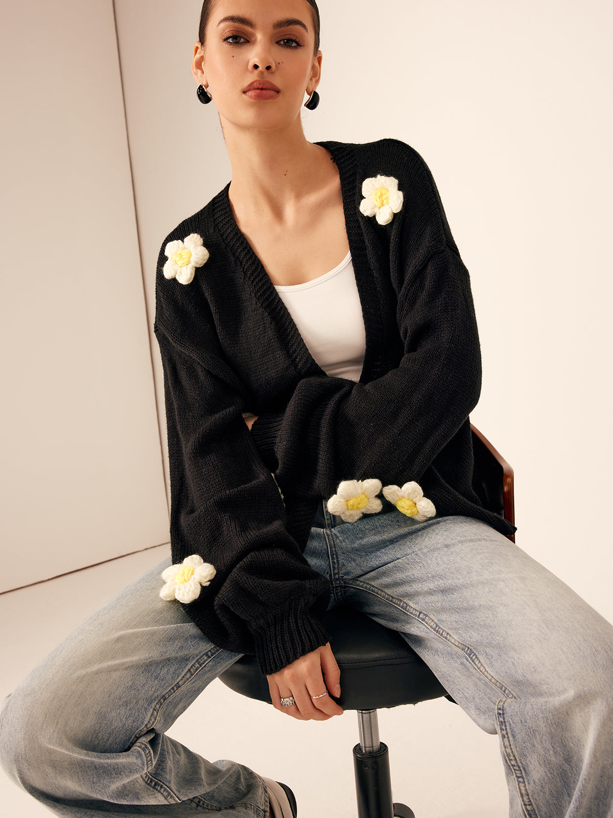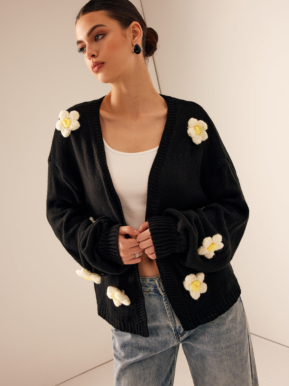 3D İşlemeli Çiçekli Fener Kol Hırka