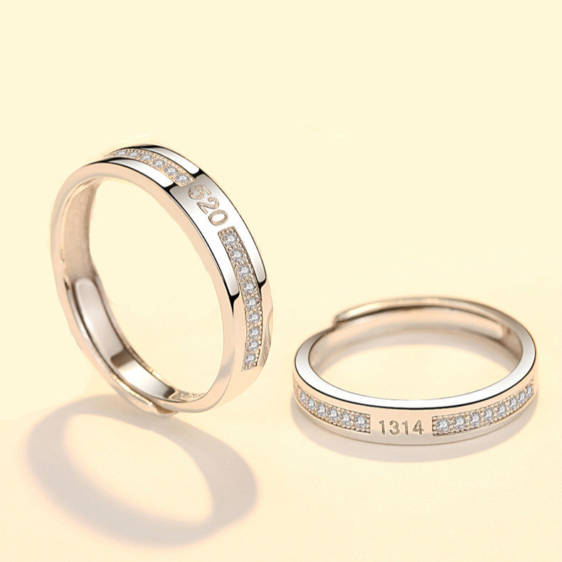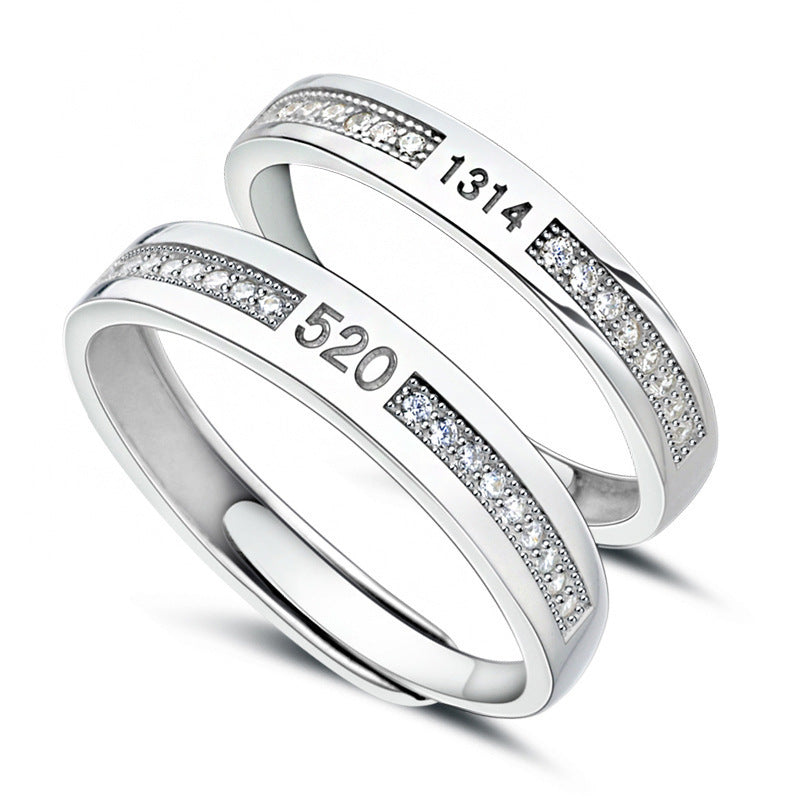 925 Ayar Ayarlanabilir Çift Yüzüğü – "520 & 1314" Aşkın Simgesi