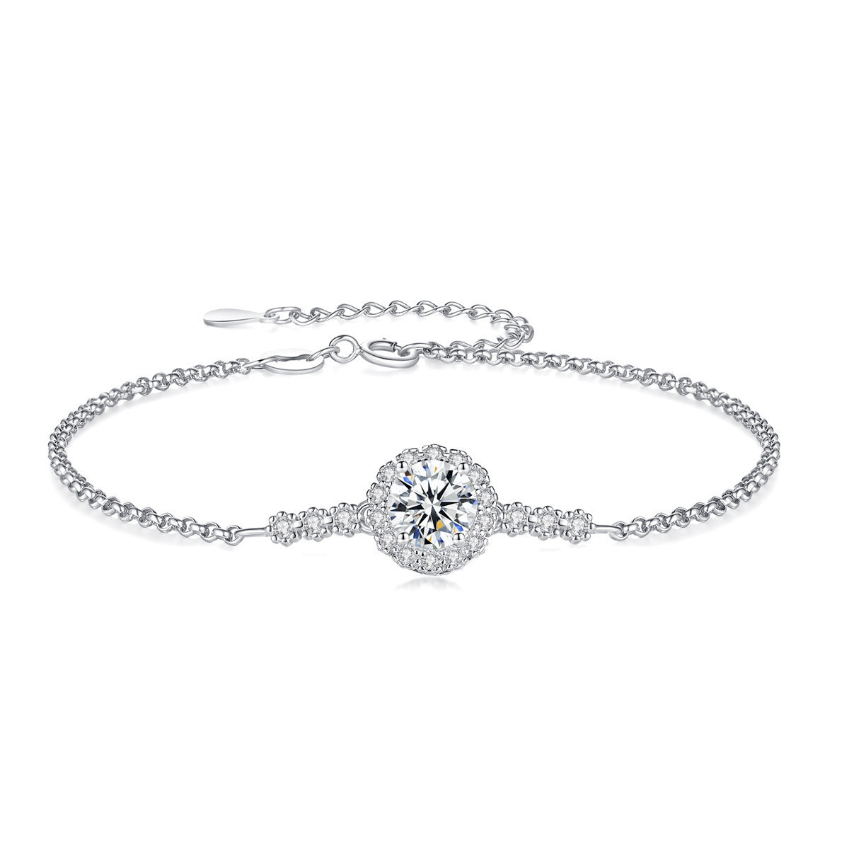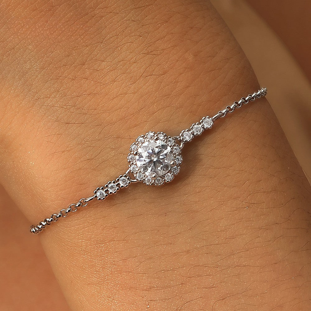 💎Zarafeti ve şıklığı bir arada sunan bu 925 ayar gümüş bileklik, merkezinde yer alan büyük taş ve etrafını çevreleyen küçük taşlarla mükemmel bir ışıltı yaratır. El işçiliğiyle işlenmiş ince zinciri, bileğinize hafiflik katarken şıklığınızı tamamlar.