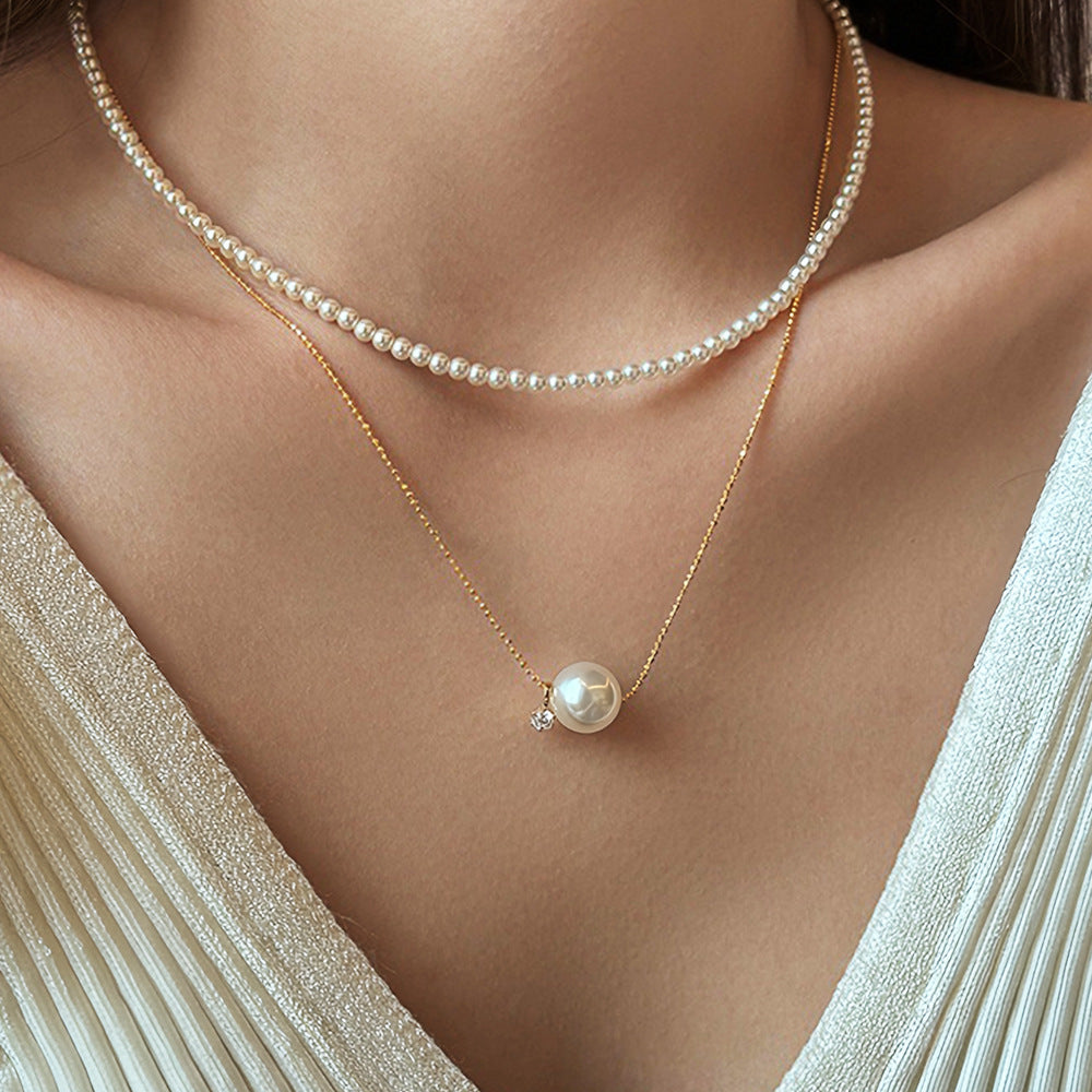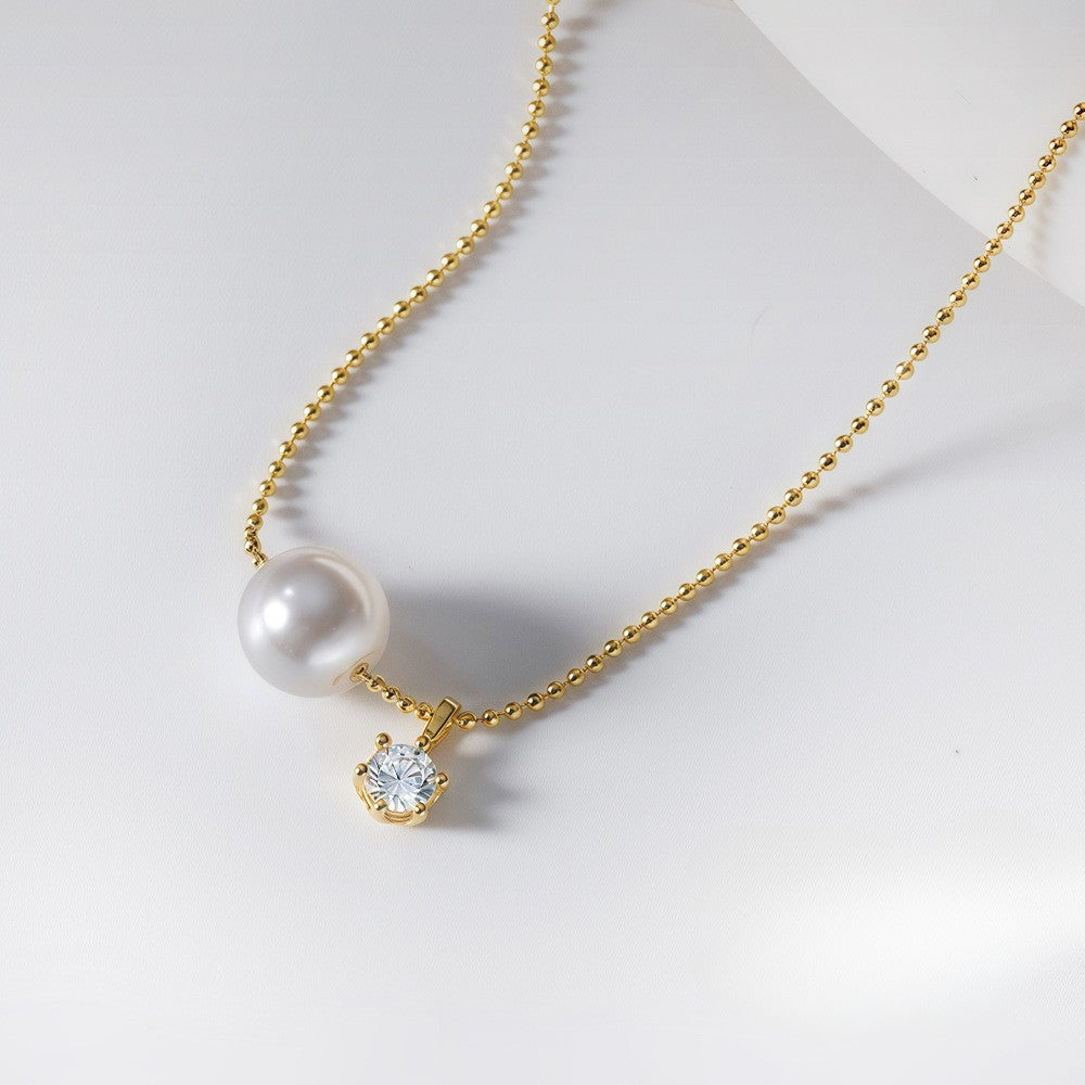 ✨925 ayar gümüşten üretilen zinciri, altın kaplama görünümüyle asil bir dokunuş sunarken, büyük beyaz inci ve💎 pırlanta görünümlü taş ile zamansız bir stil yaratıyor.
