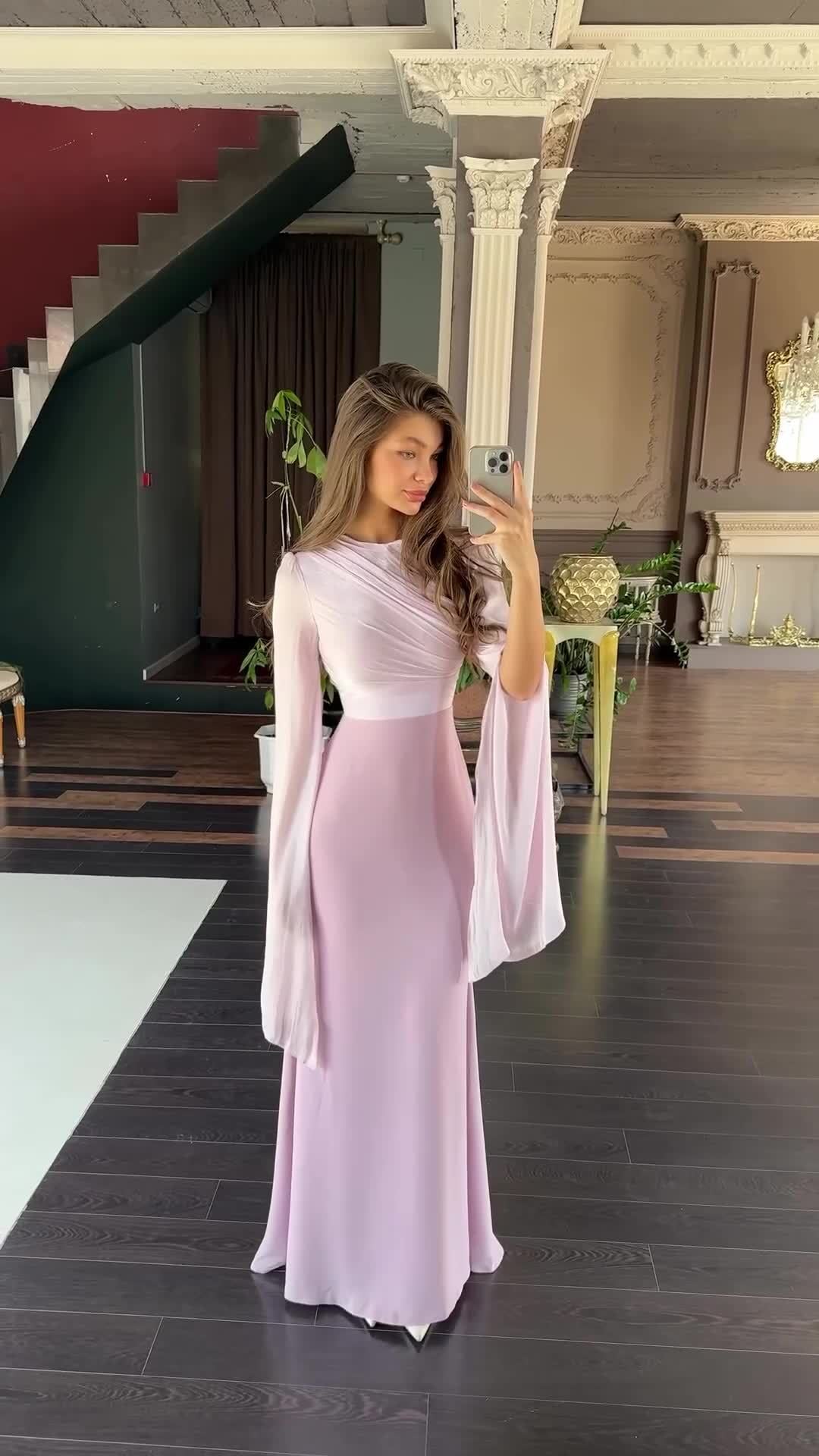 👗 Drapeli üst tasarımı ve dökümlü kollarıyla asil bir görünüm sunar.