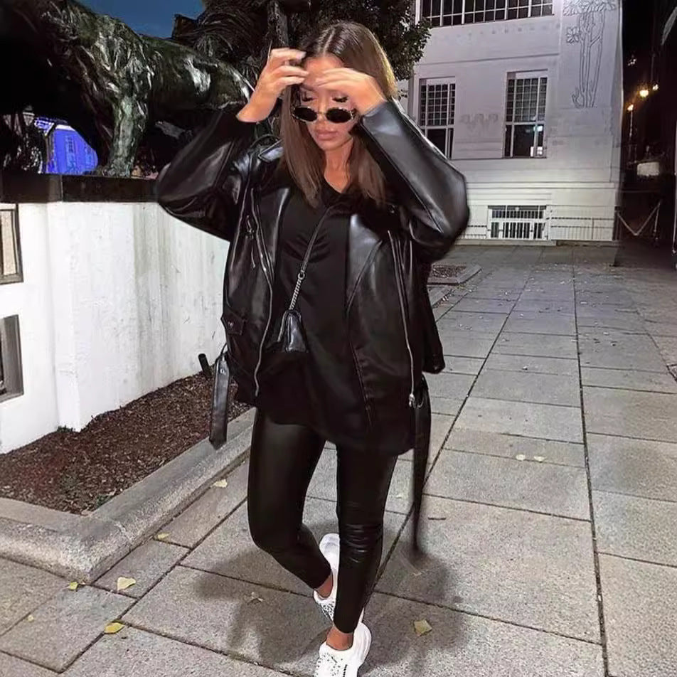 Zamansız bir klasik ve sokak modasının vazgeçilmezi! 🖤 Bu oversize suni deri ceket, tarzınıza asi ve şık bir hava katmak için tasarlandı. 🤩 Geniş kalıbı sayesinde rahat bir kullanım sunarken, metal fermuar ve kemer detayları ile dinamik bir görünüm yaratır. ⛓️ Kaliteli suni deri kumaşı ile hem dayanıklı hem de çevre dostu bir seçimdir. 🌿 Jeans'lerden elbiselere, her parçayla mükemmel uyum sağlar. Kendine güvenli ve iddialı bir stil için hemen sepetinize ekleyin! 🛒✨