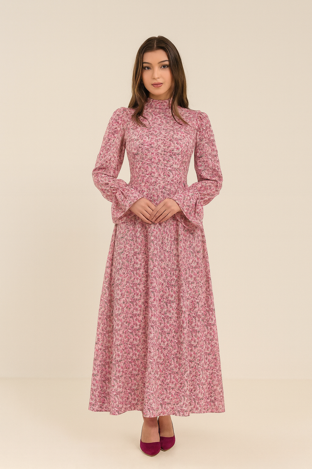 Alisora Pembe Çiçekli Şifon Maxi Elbise