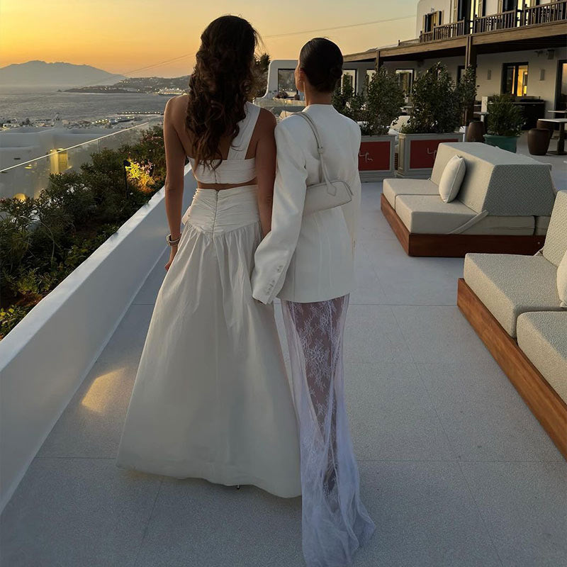 🌿 Asimetrik formu ve dantel transparan etekle tamamlanan bu stil,