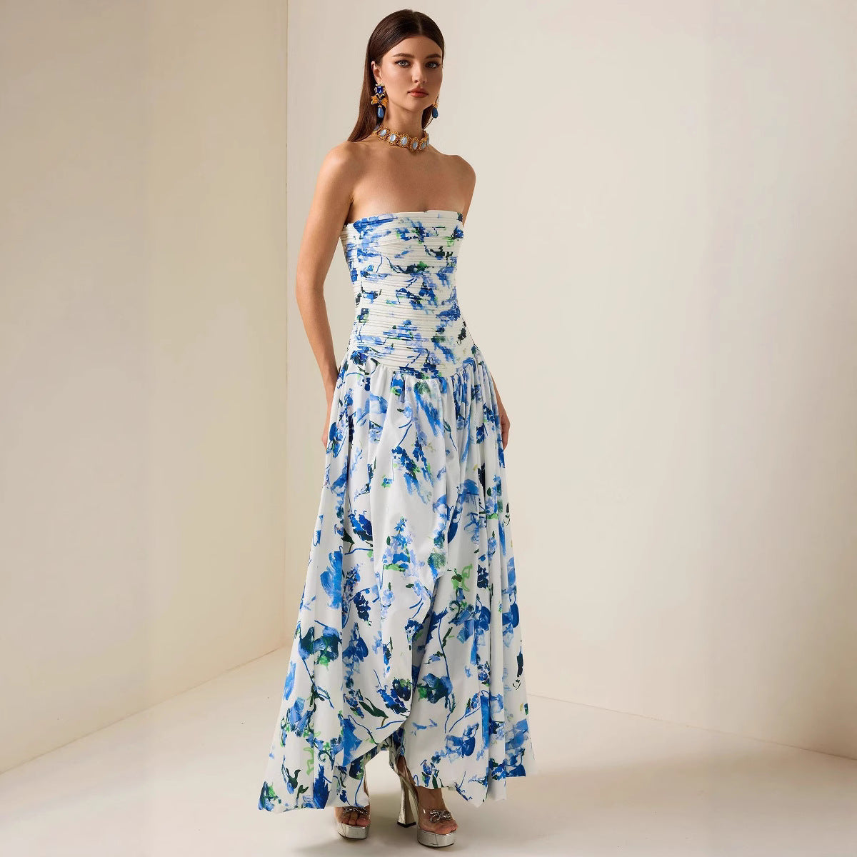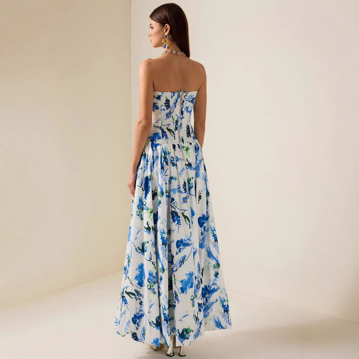 ✨Zarif ve romantik dokunuşlarıyla öne çıkan 💙 mavi çiçek desenli straplez maxi elbise , yüksek yırtılmamaç detayı ve hafif şifon kumaşıyla yaz davetlerinin vazgeçilmezi olacak. Gündüzden geceye uzanan şıklık için mükemmel bir seçim.