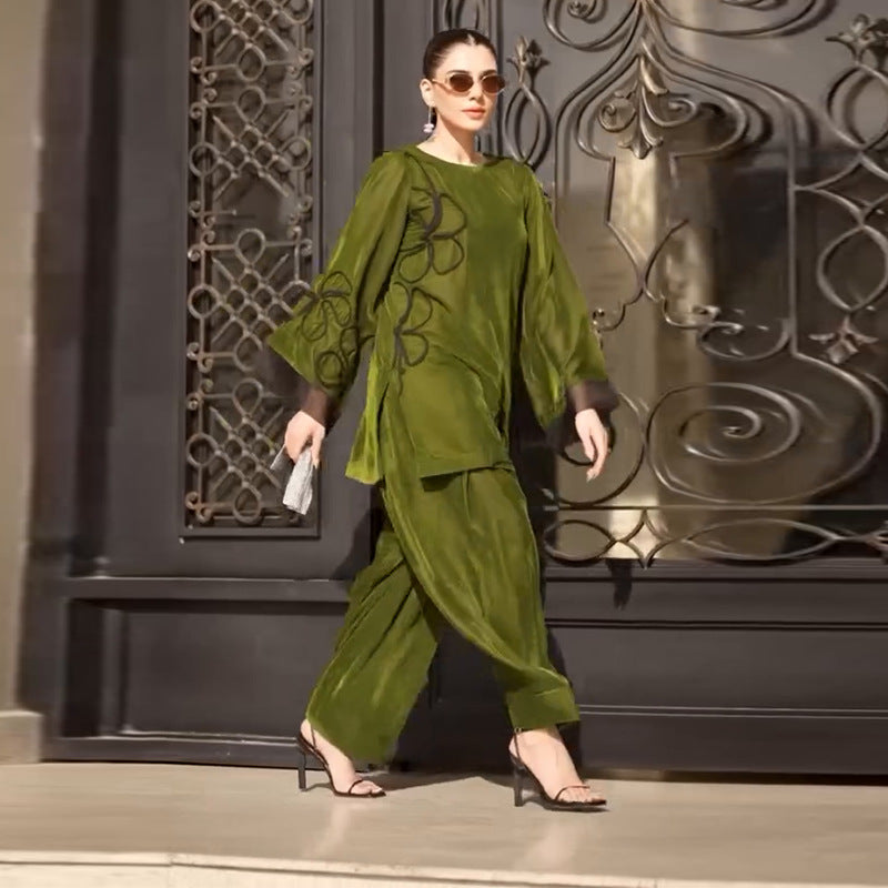 Kadife dokusuyla şıklığı ve konforu bir araya getiren ikili takım, hem gündelik hem de özel davetleriniz için mükemmel bir tercih.