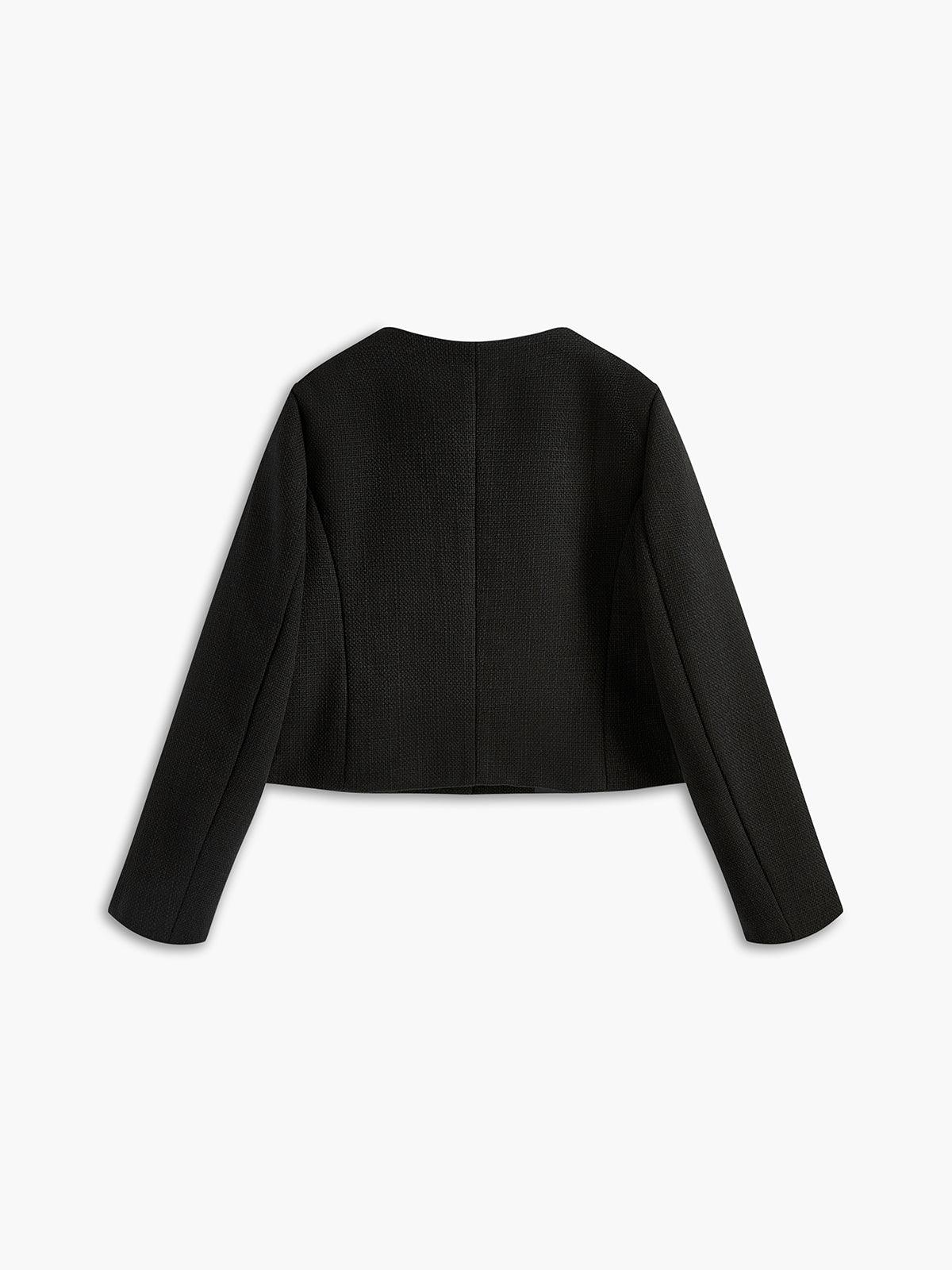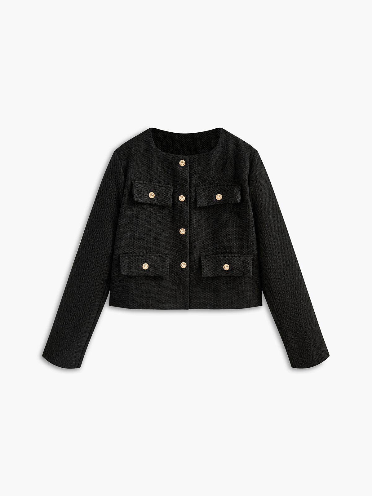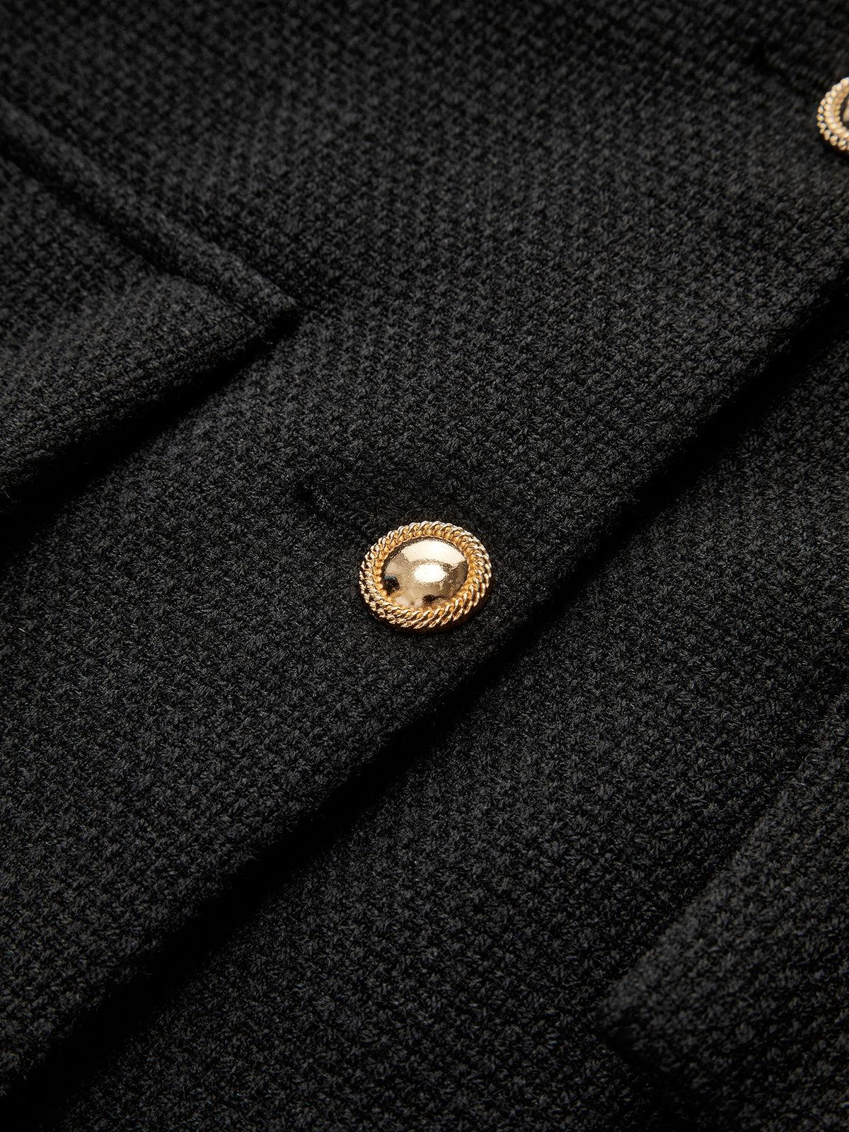 Altın Düğme Detaylı Siyah Kısa Ceket