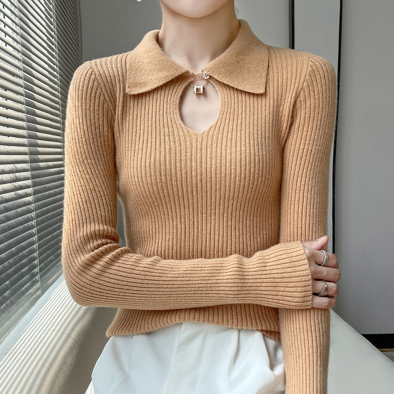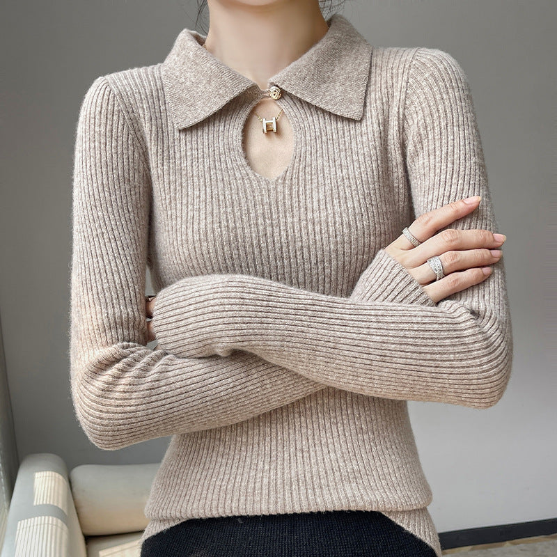 Minimalist çizgilerle tasarlanmış bu bej polo yaka triko, zarif duruşu ve modern detaylarıyla dolabınızın vazgeçilmez parçası olacak. İnce ribana dokusu vücudu nazikçe sararken, yaka kısmındaki küçük kesim detayı klasik şıklığa feminen bir dokunuş katar.