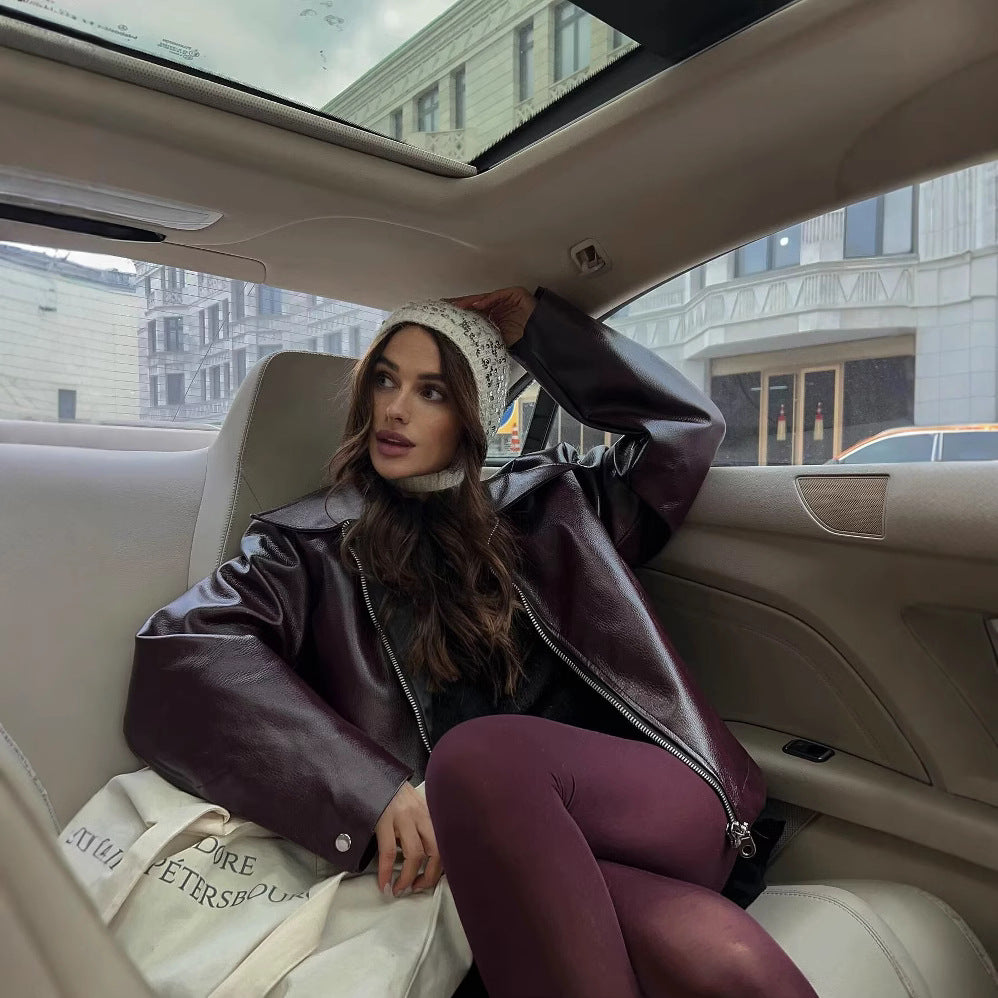 Modern sokak stilinin güçlü parçası: Deri görünümlü kısa ceket, oversize kesimiyle cool bir duruş sergiler. Hem günlük kombinlerde hem de şehir şıklığında rahatlıkla kullanılabilir.