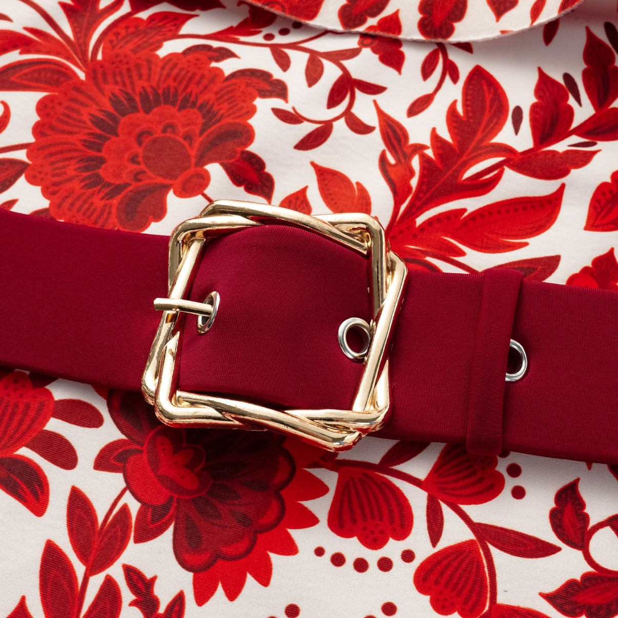 Bandeau Fırfırlı Kırmızı Çiçek Silueti Mayo-Pareo