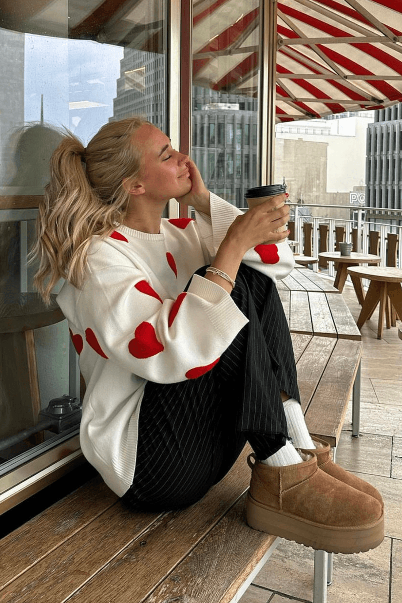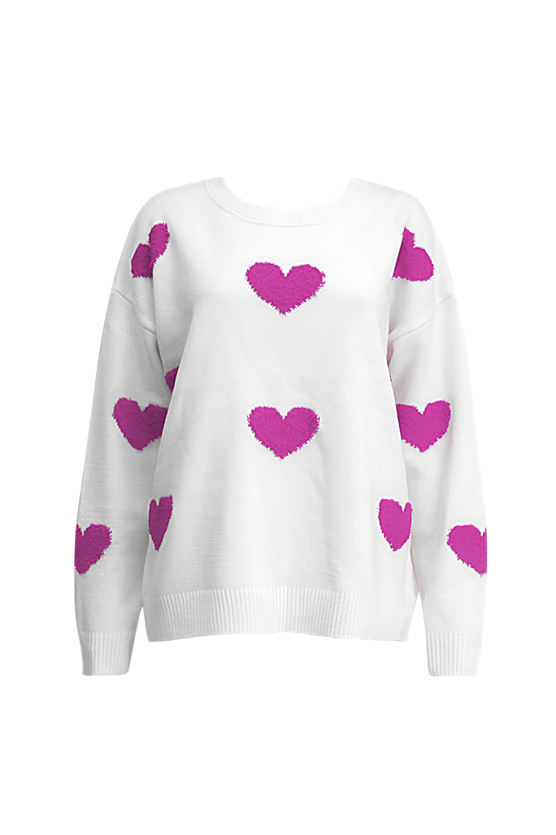 Kalp işlemeli ve klasik yuvarlak yakalı kazak kazaklarımızla zahmetsiz çekiciliği keşfedin. Bu örgü kazak bol ve rahat bir kesim için tasarlanmış olup hem konfor hem de stil sunar.