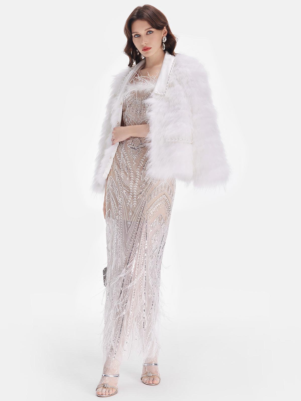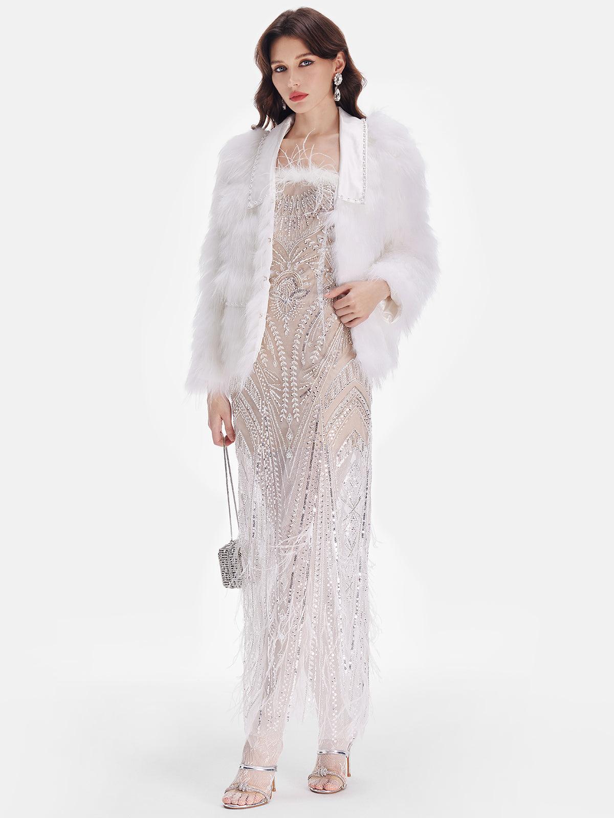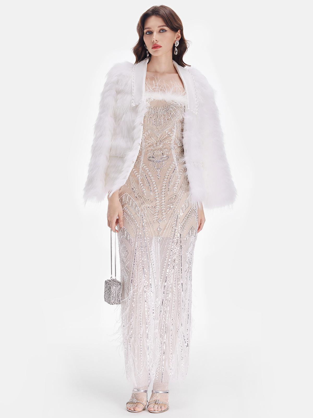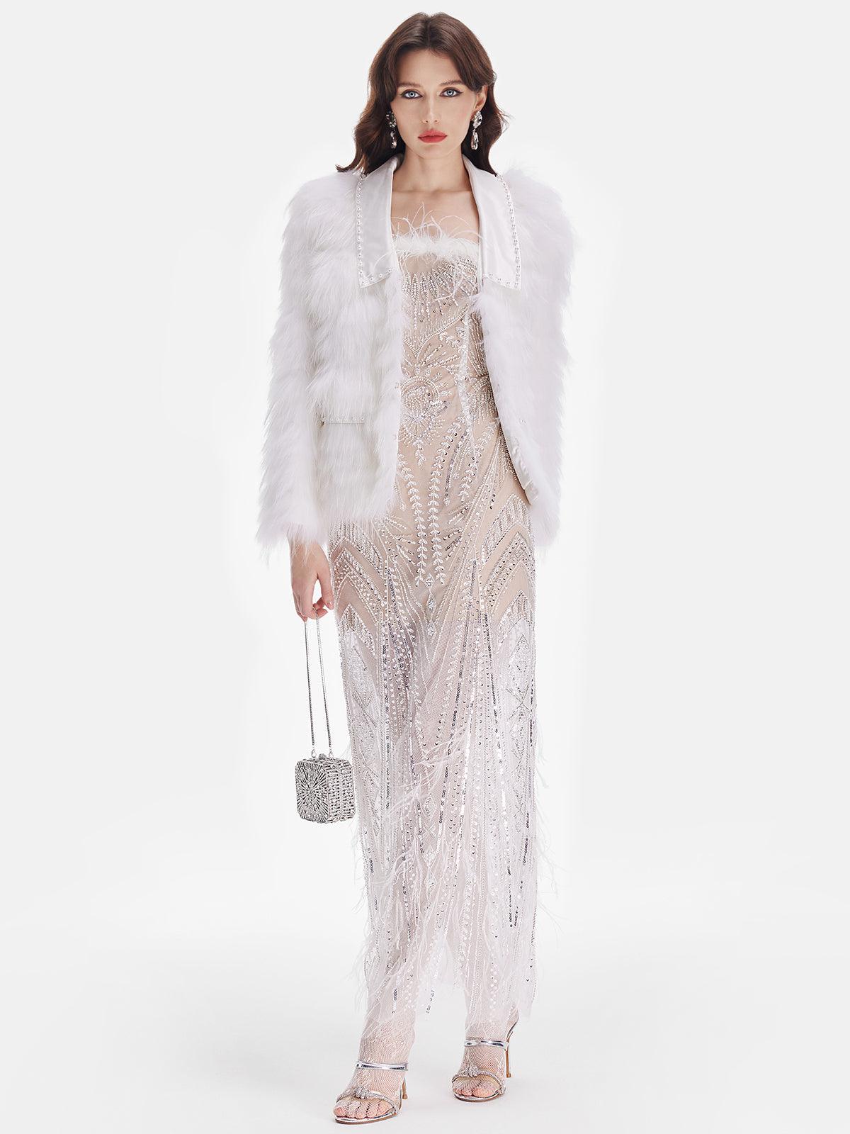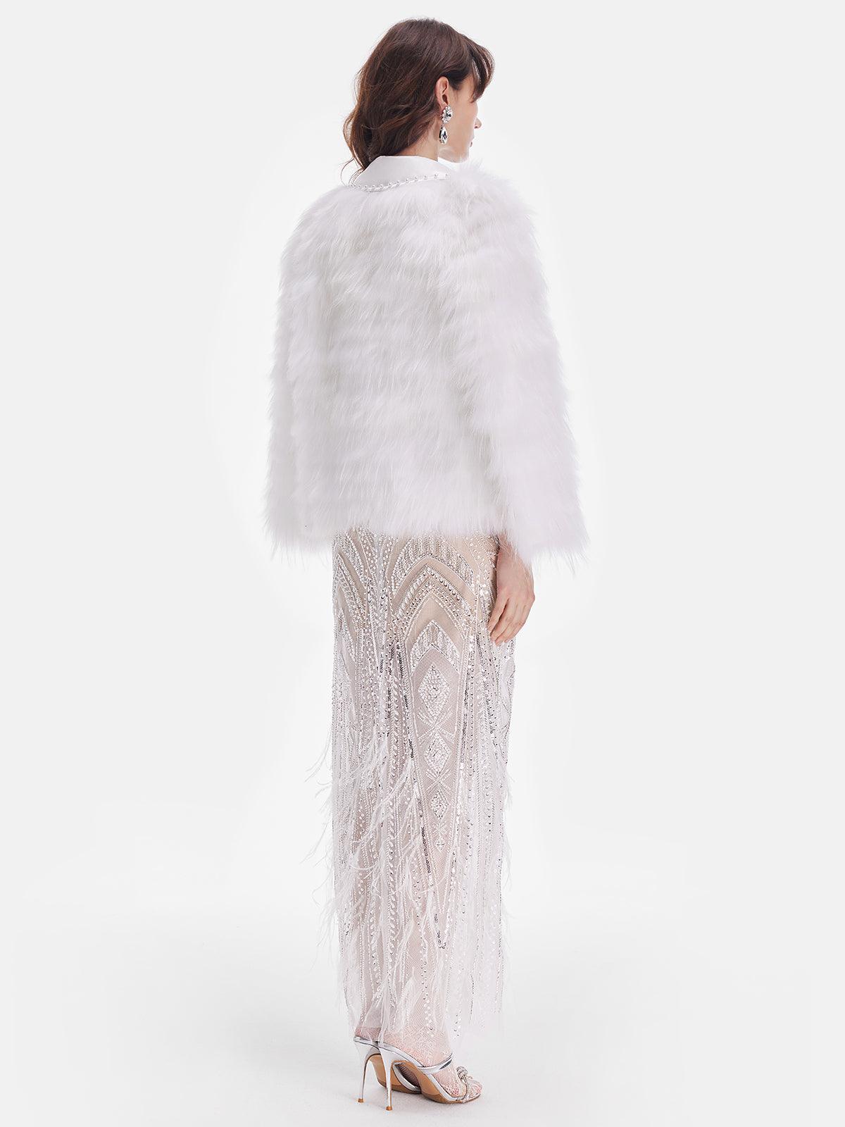 Beyaz Tüy Detaylı Işıltılı Ceket