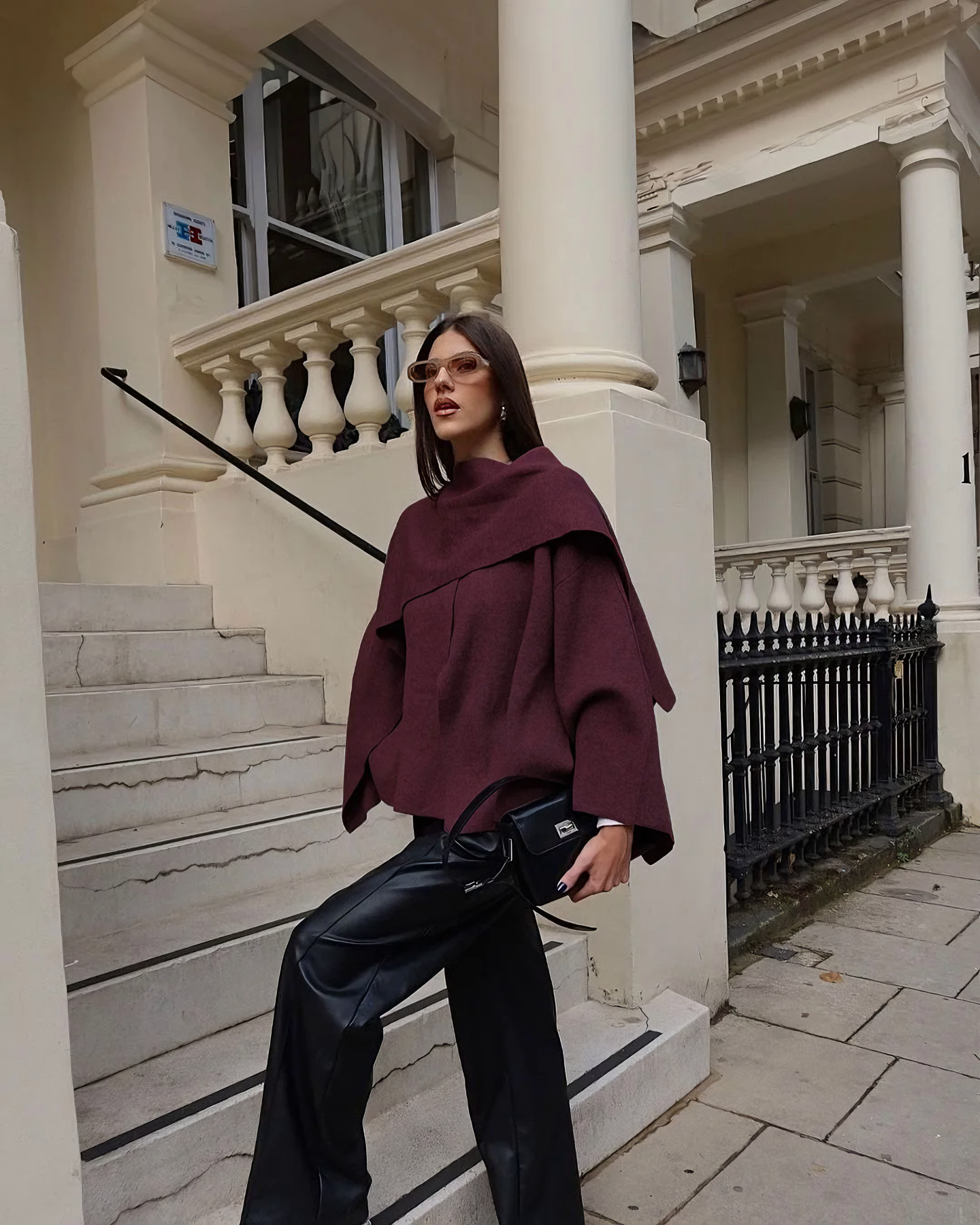Şıklığı ve konforu aynı anda sunan katmanlı pelerin kazak, modern ve şehirli bir siluet yaratır. Omuzdan aşağı dökülen pelerin formu sofistike bir hava katarken, rahat kesimi gün boyu konfor sağlar. Sonbahar–kış kombinlerinin yıldızı.