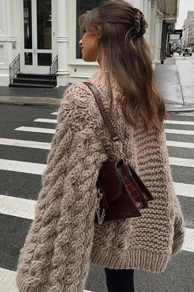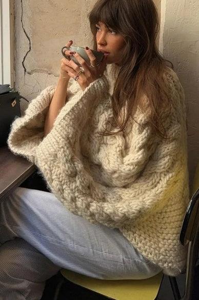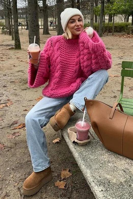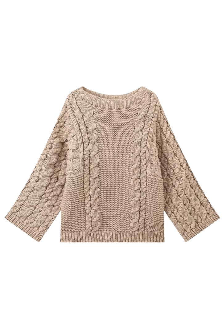 Bu sonbahar örgü kazak, klasik yuvarlak yakalı ve şık çan kolluyla rahat ve zarif bir görünüm sunuyor. Bol kesim rahatlık ve rahatlık sağlayarak serin günlerde üst üste giymek veya tek başına giymek için mükemmeldir.