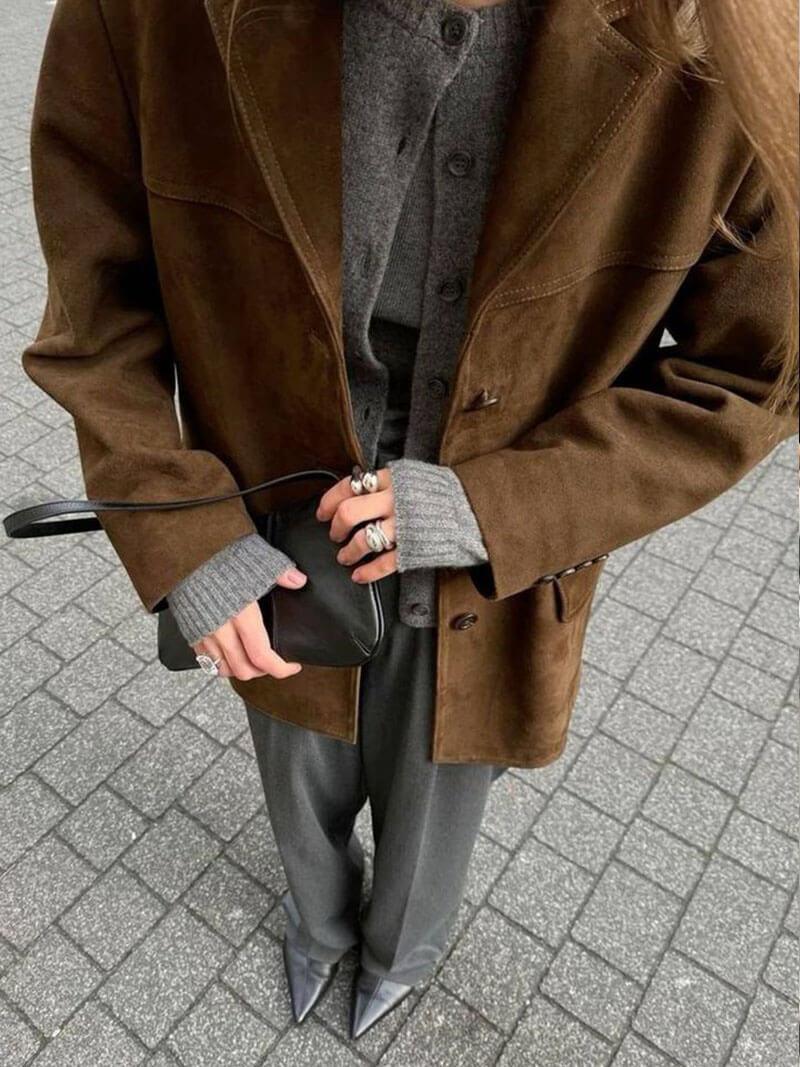 Karşınızda moda ve kullanışlılığı zahmetsizce birleştiren polyester bir giysi olan Celine Süet Ceket. Yakası ve ön düğmesi, geniş kesimi, ön ve arka omuz kısmı, hafif düşük omuz dikişleri, düğmeli manşeti, ön kısmında yama cepleri ve alt kısmında astarlı lastiği ile bu kırpılmış, uzun kollu ceket rahat, şık, havalı ve motorcu bir görünüm için idealdir. Şık, rahat, sonbahar stili, ister gezintiye çıkın ister havalı, sinirli bir görünüm elde edin, kıyafetinizle mükemmel uyum sağlar. Bu önemli parçayı koleksiyonunuza ekleyerek öne çıkmasını sağlayın.