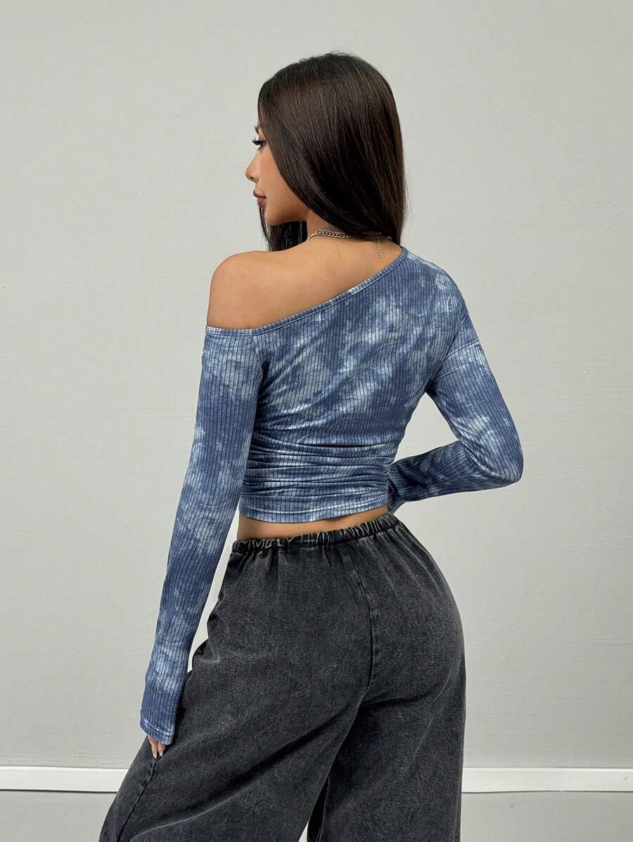Asimetrik Yaka Uzun Kollu İnce Üst