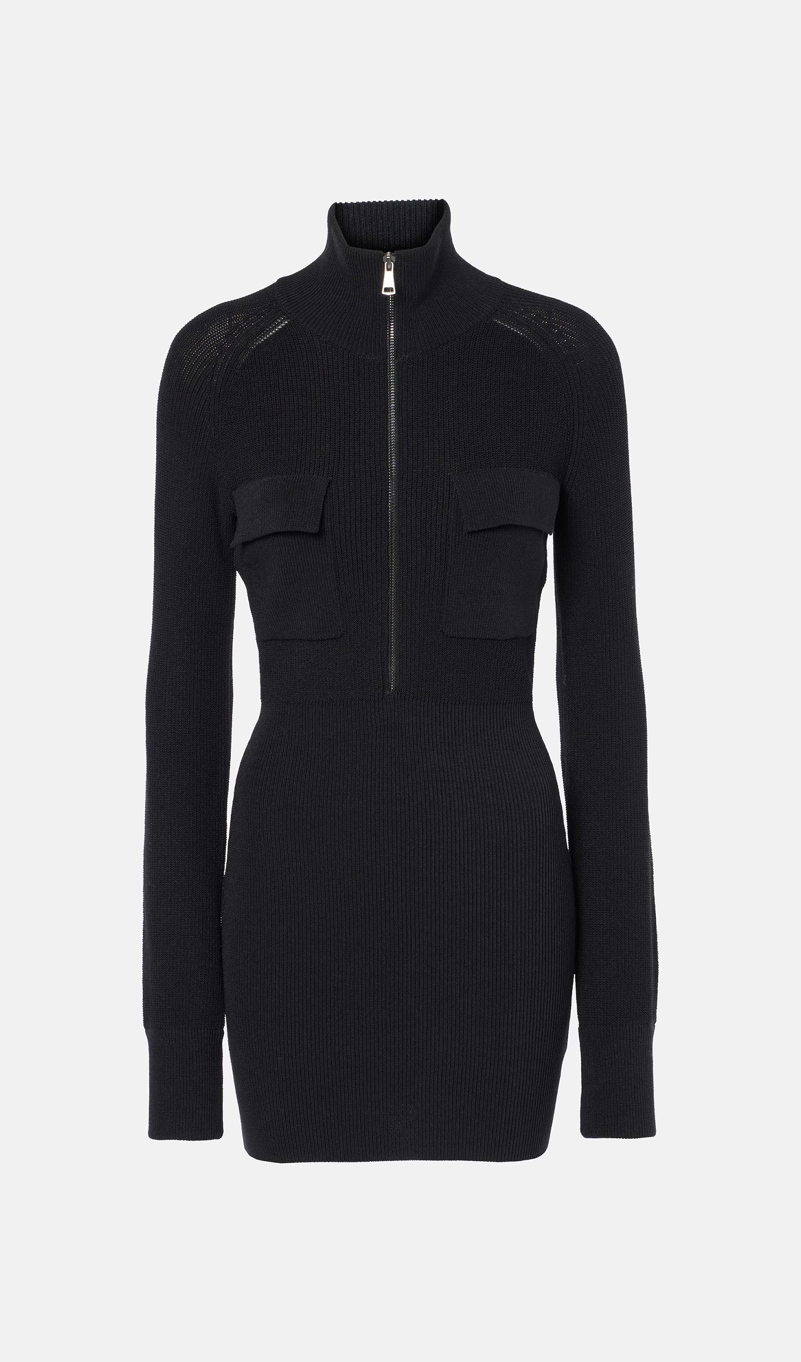 Los Angeles'ta tasarlanan elbise, göze çarpan temel parçalar ve güçlendirici gece kıyafetleri için gidilecek bir yer olarak kendini kanıtlamıştır. Fermuarlı balıkçı yakalı pamuk karışımlı mini elbise, gündüzden geceye çok yönlü bir stildir.