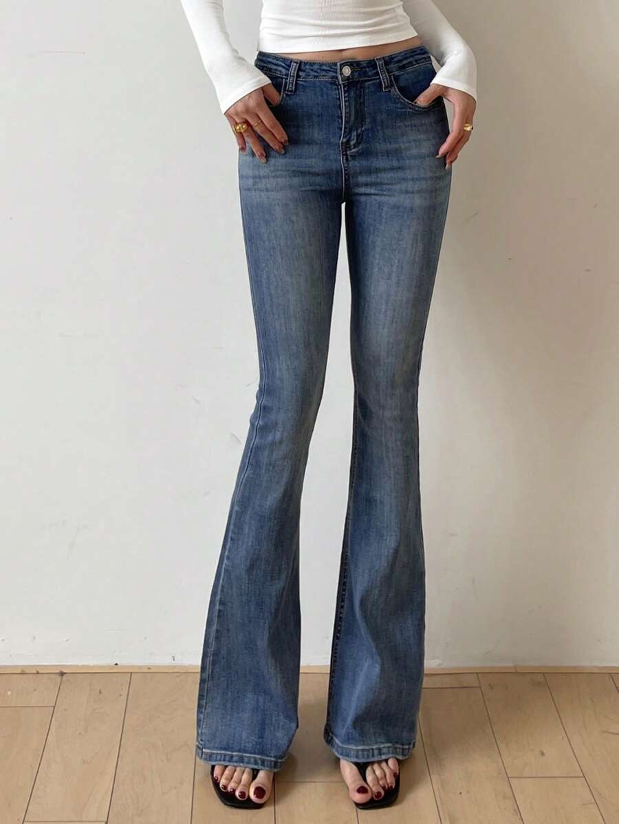 Esnek Slim Fit Yıkamalı Kloş Pantolon