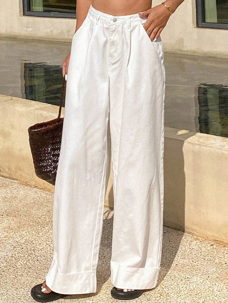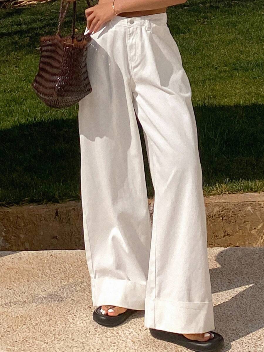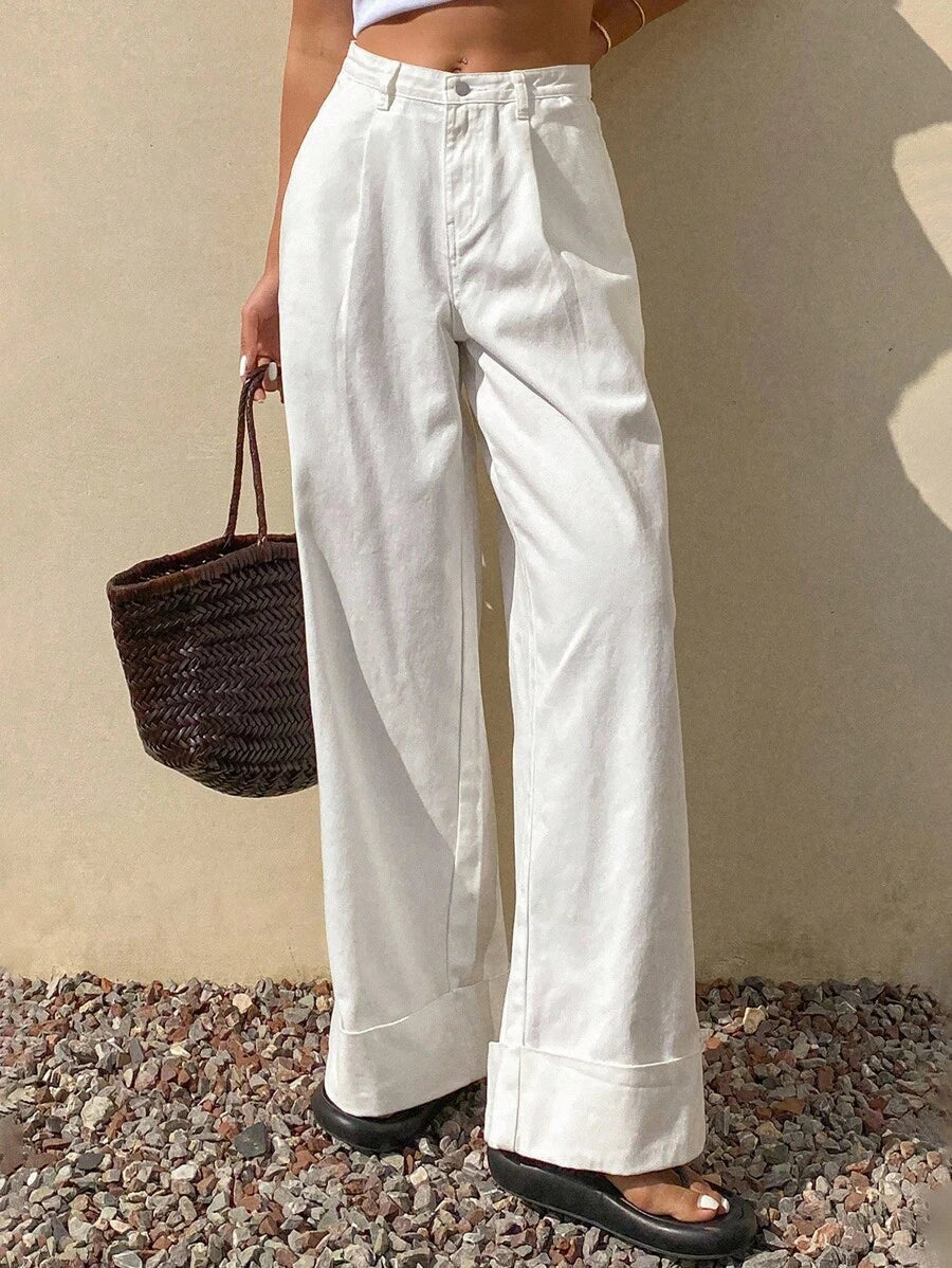 Katlanabilir Bel Geniş Paça Kot Pantolon
