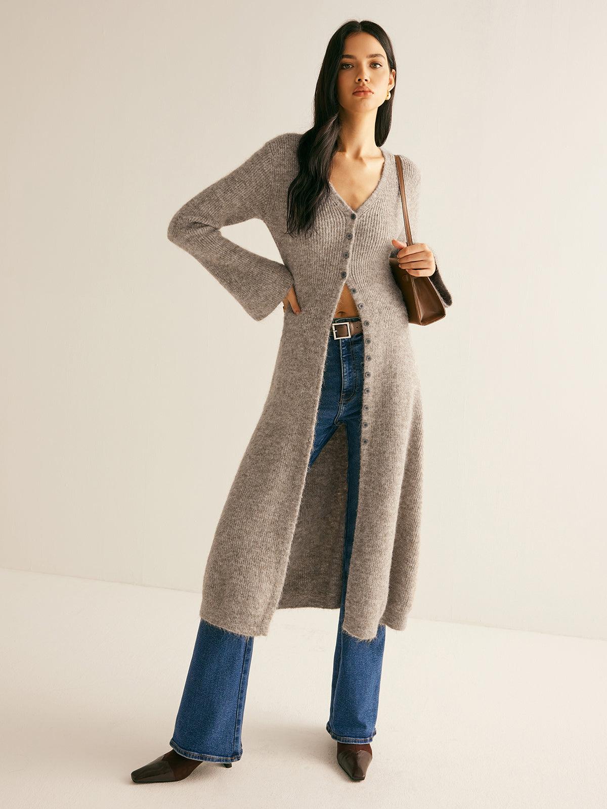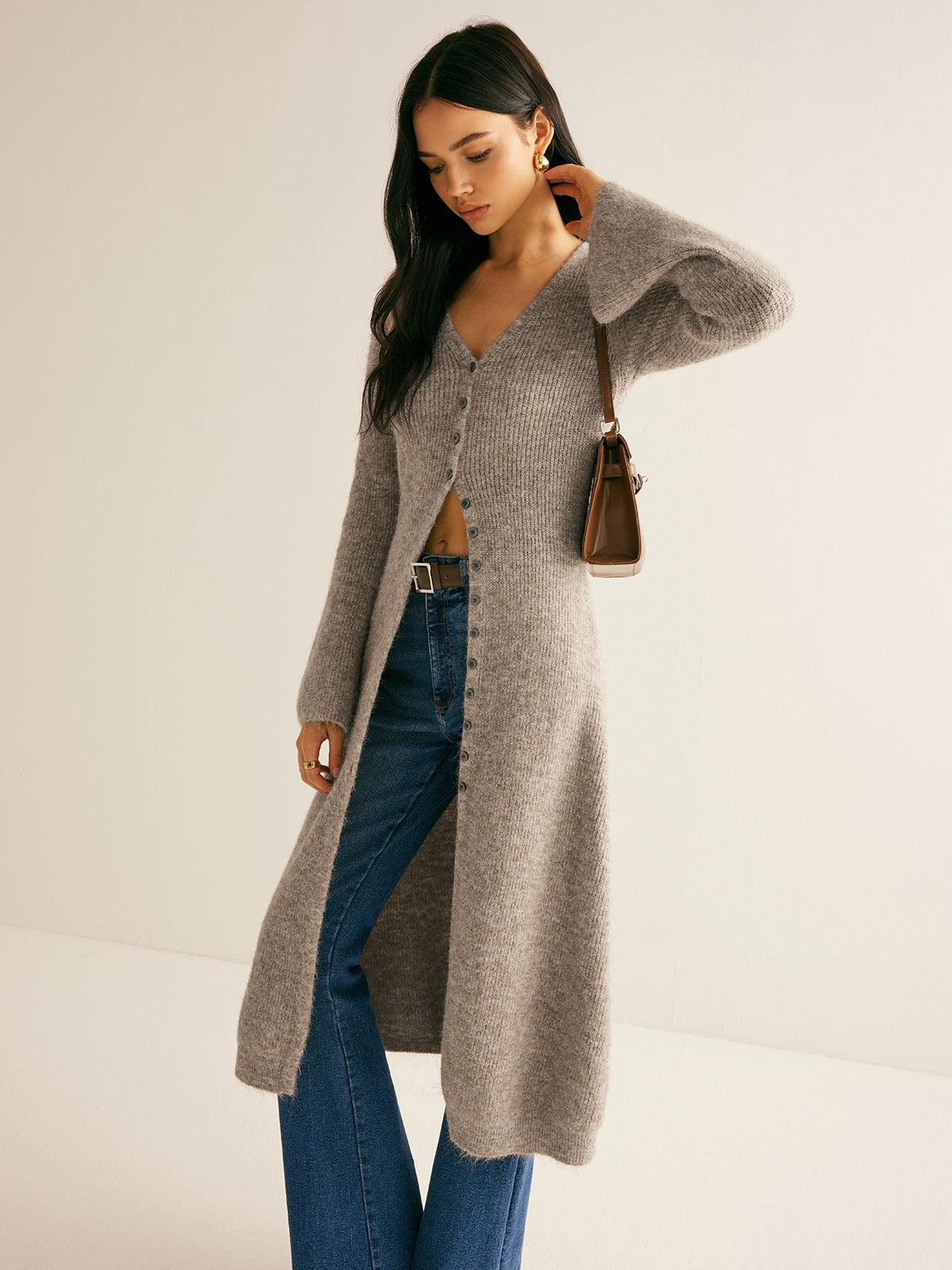 Düğmeli Uzun Gri Hırka