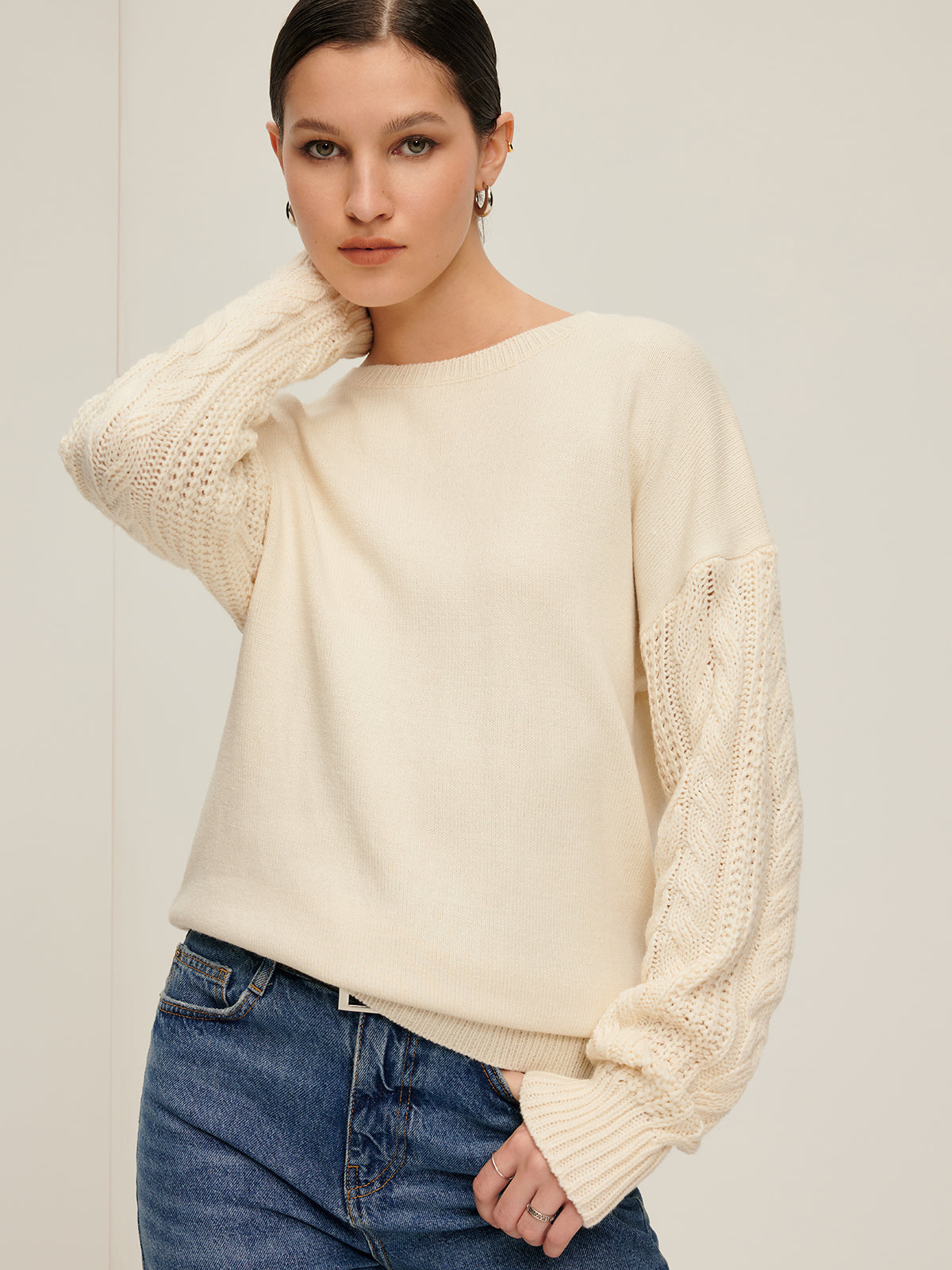 Düz Kablo Kollu Kazak Kazak