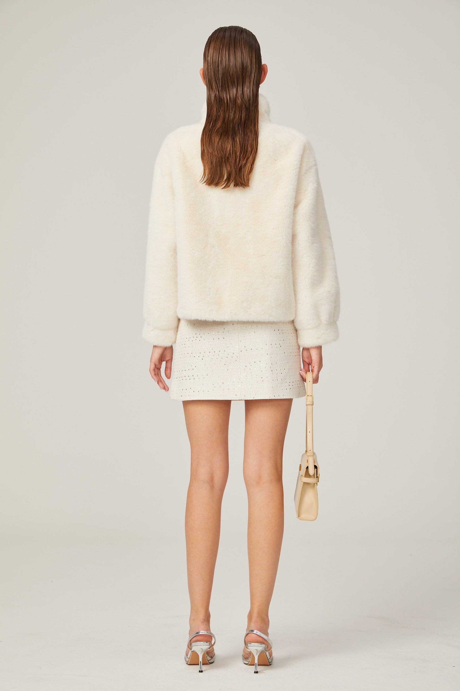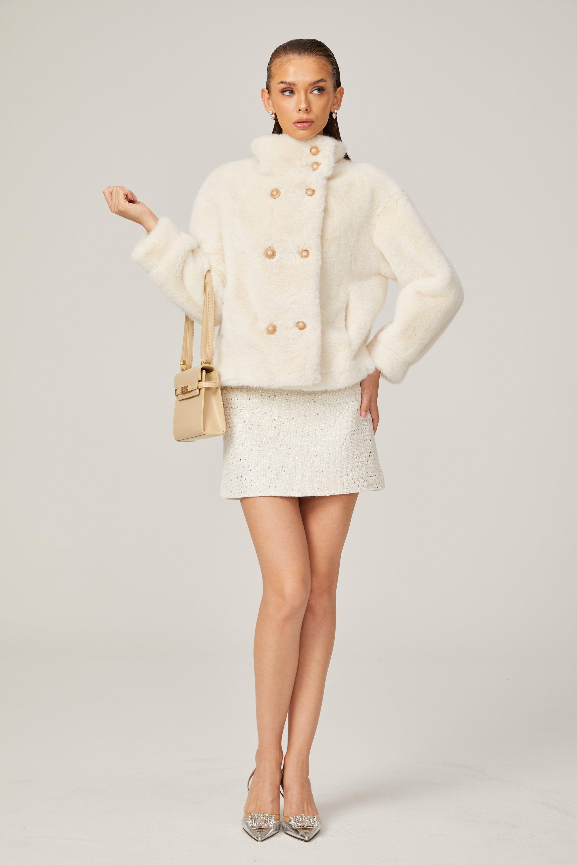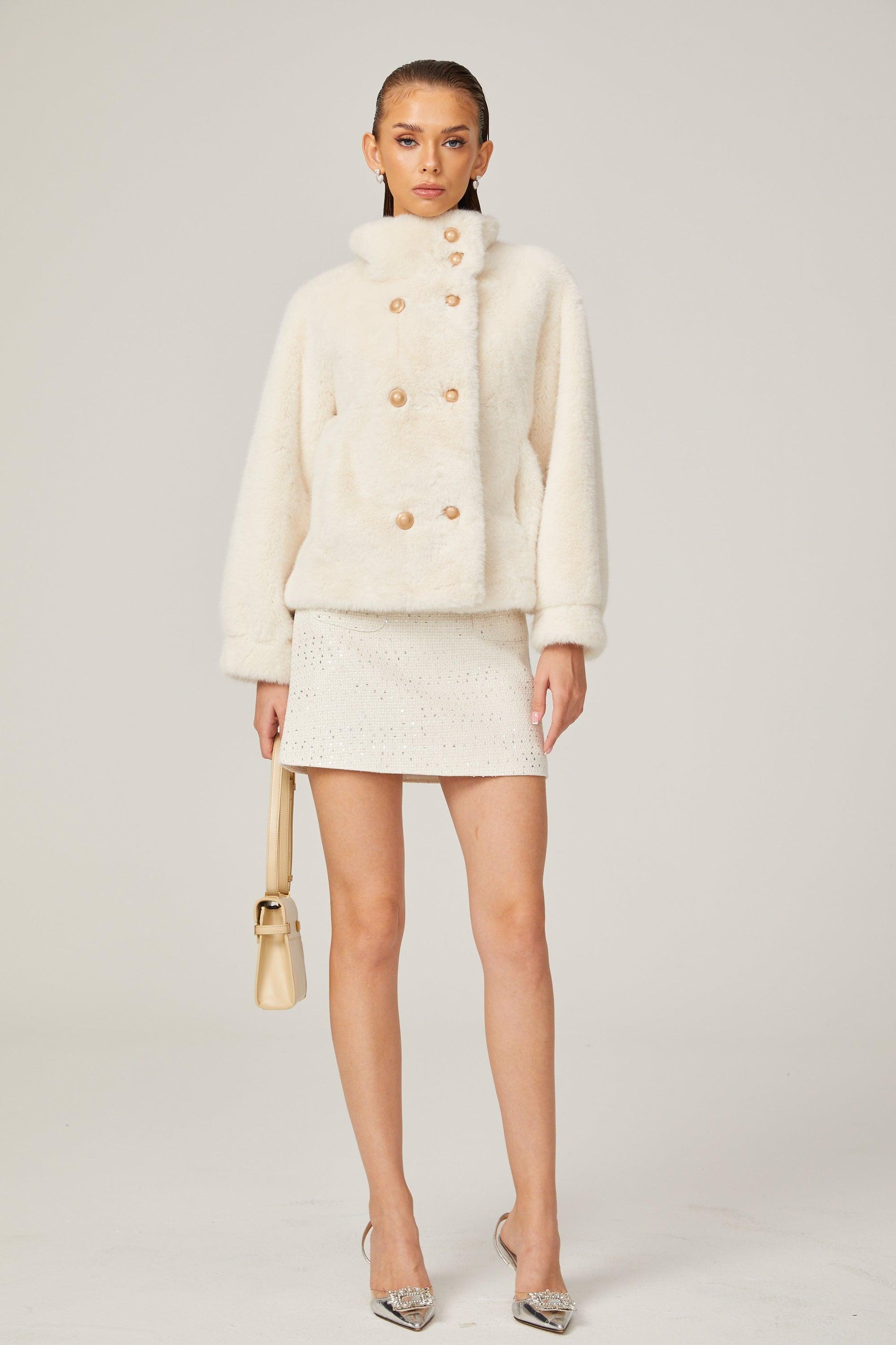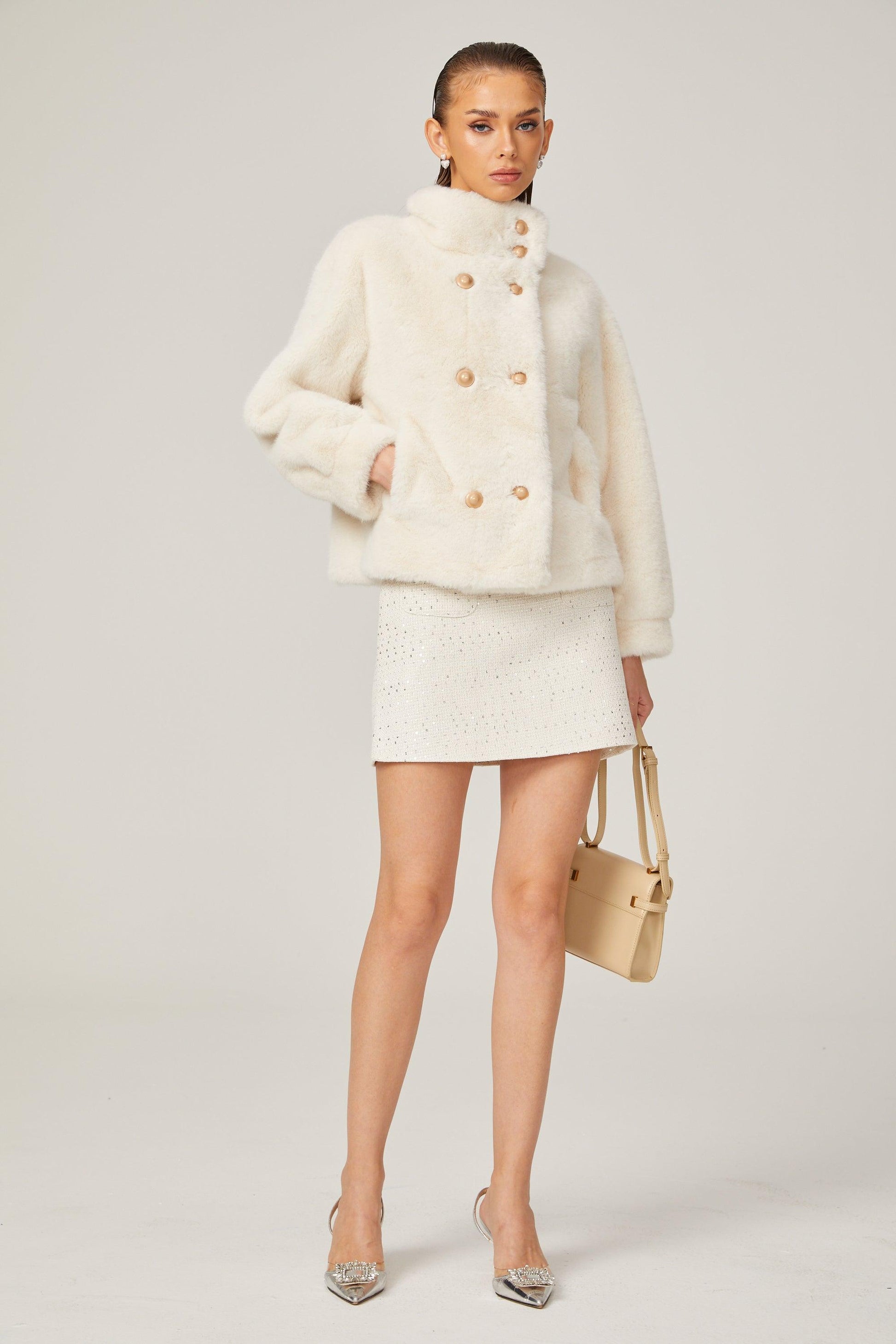 Elegance Pearl Çift Düğmeli Peluş Kaban