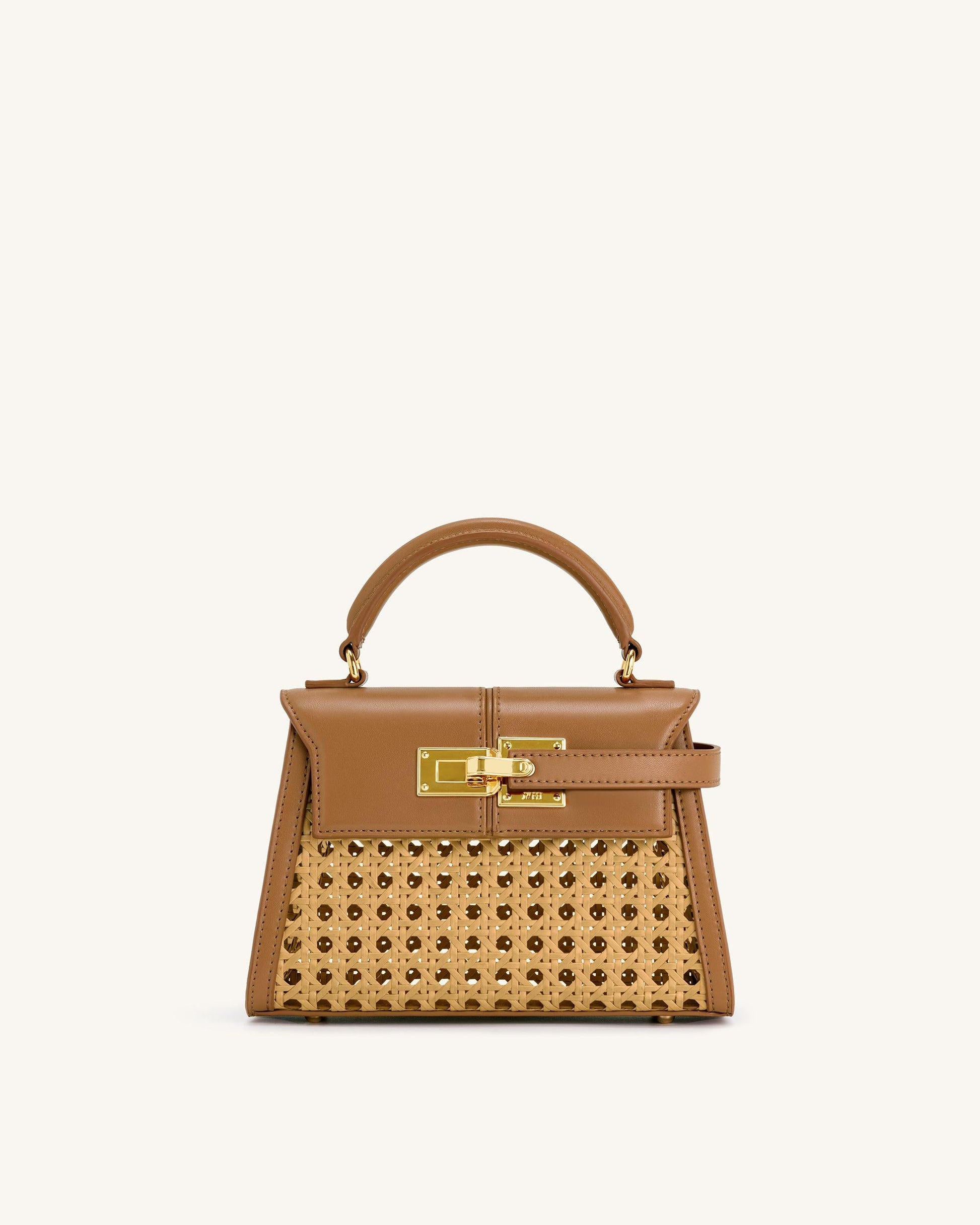 Elise Sahte Bambu Dokuma Üst Saplı Çanta Kahverengi