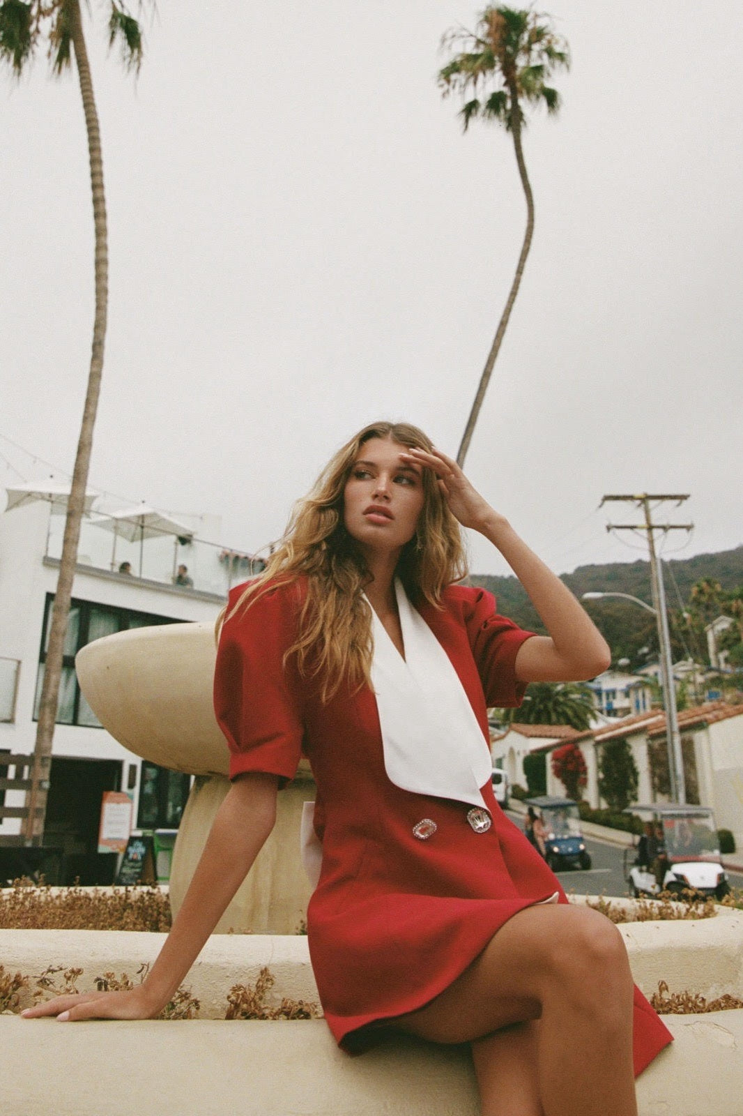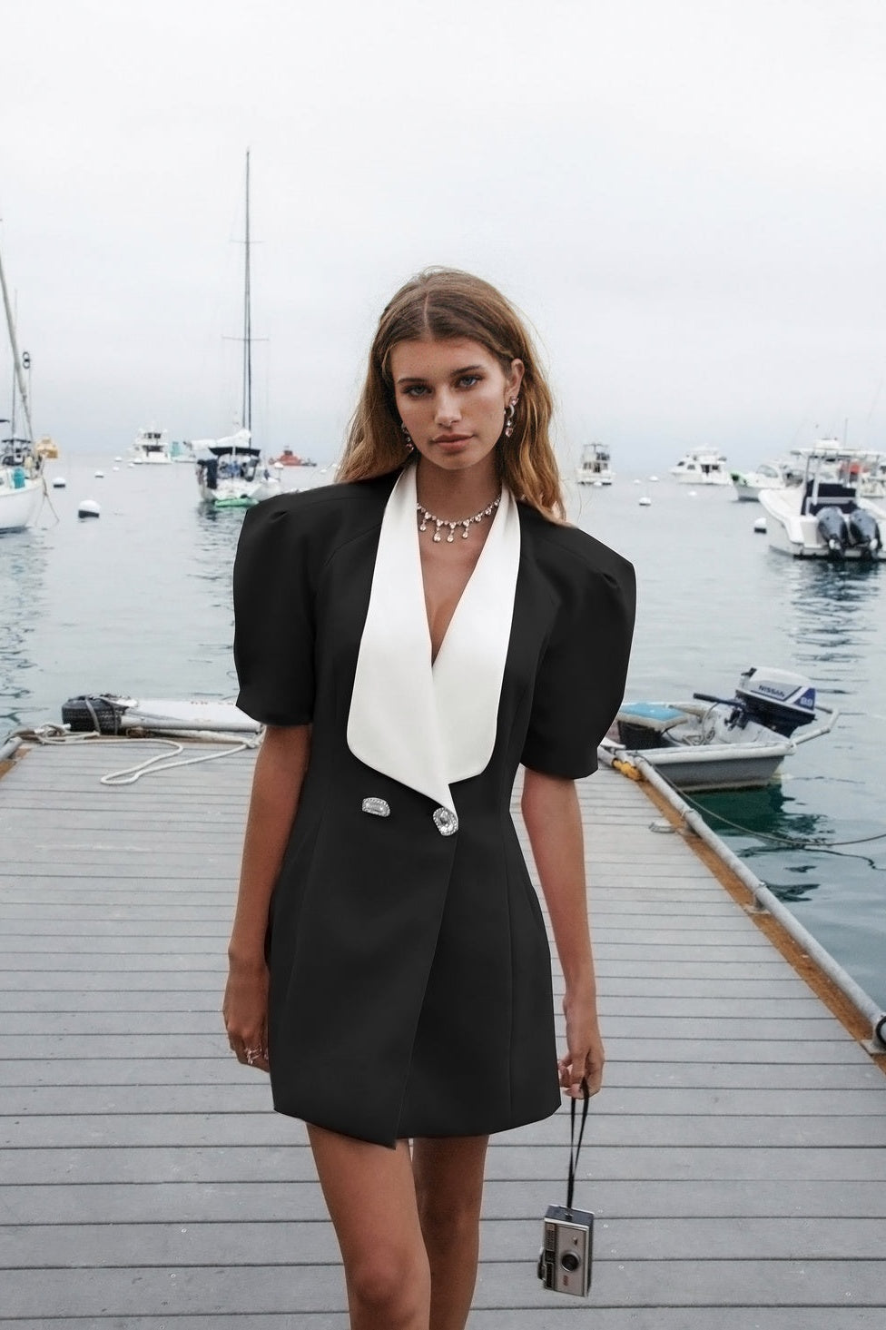 Elsie V Yakalı Sırtı Açık Papyon Mini Elbise