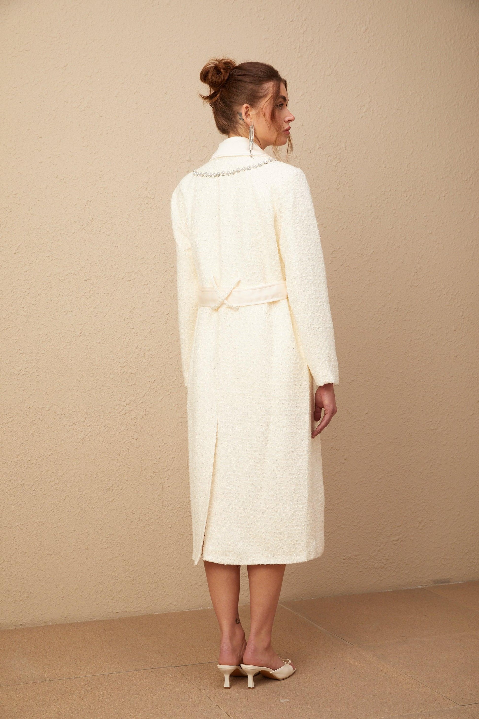 Eternal Grace Beyaz Kuşaklı Uzun Kaban